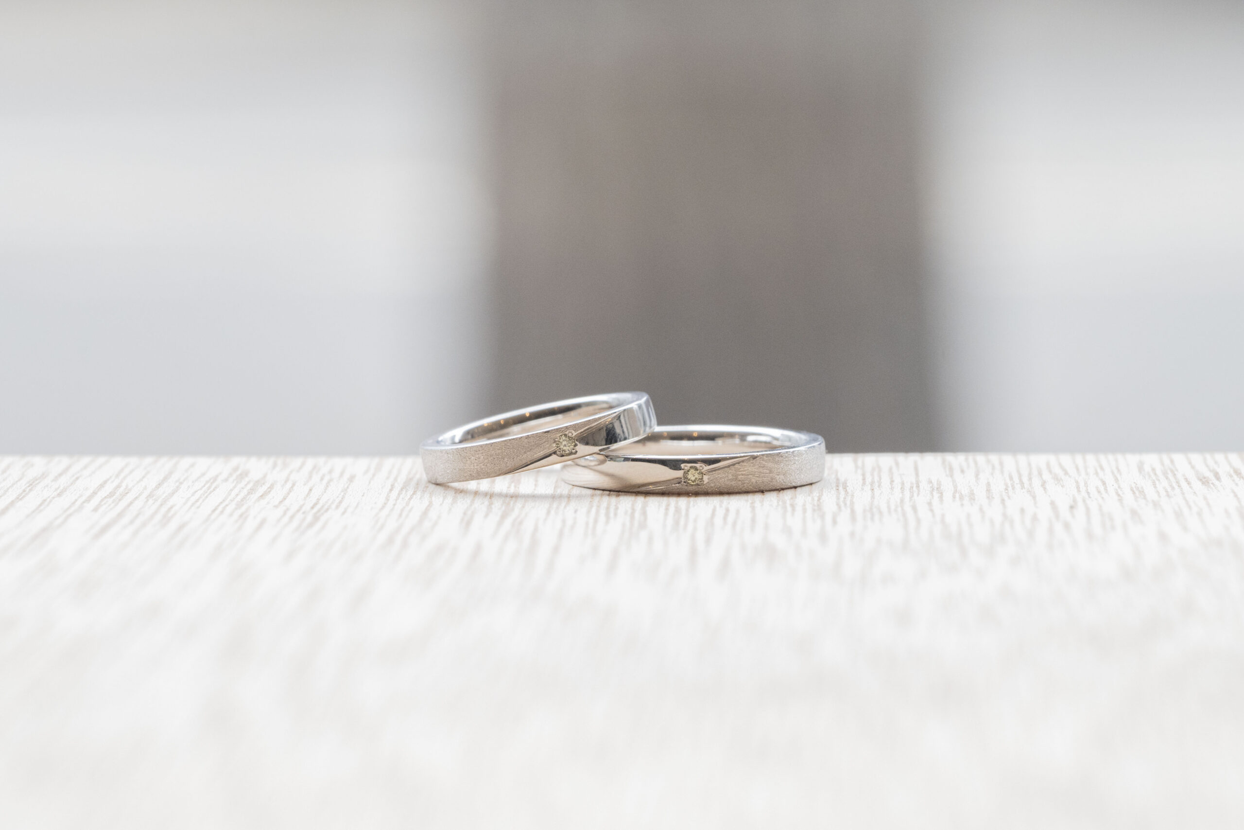 ななこ留めとは、宝石を留める方法のひとつです。地金にセットした宝石を「ななこ」と呼ばれる道具で4箇所を抑え留めます。その際にできる突起が魚の卵のように見えることから「ななこ留め」と呼ばれるようになりました。こちらの方法を使い、リングの内側に一粒の宝石を留めます。