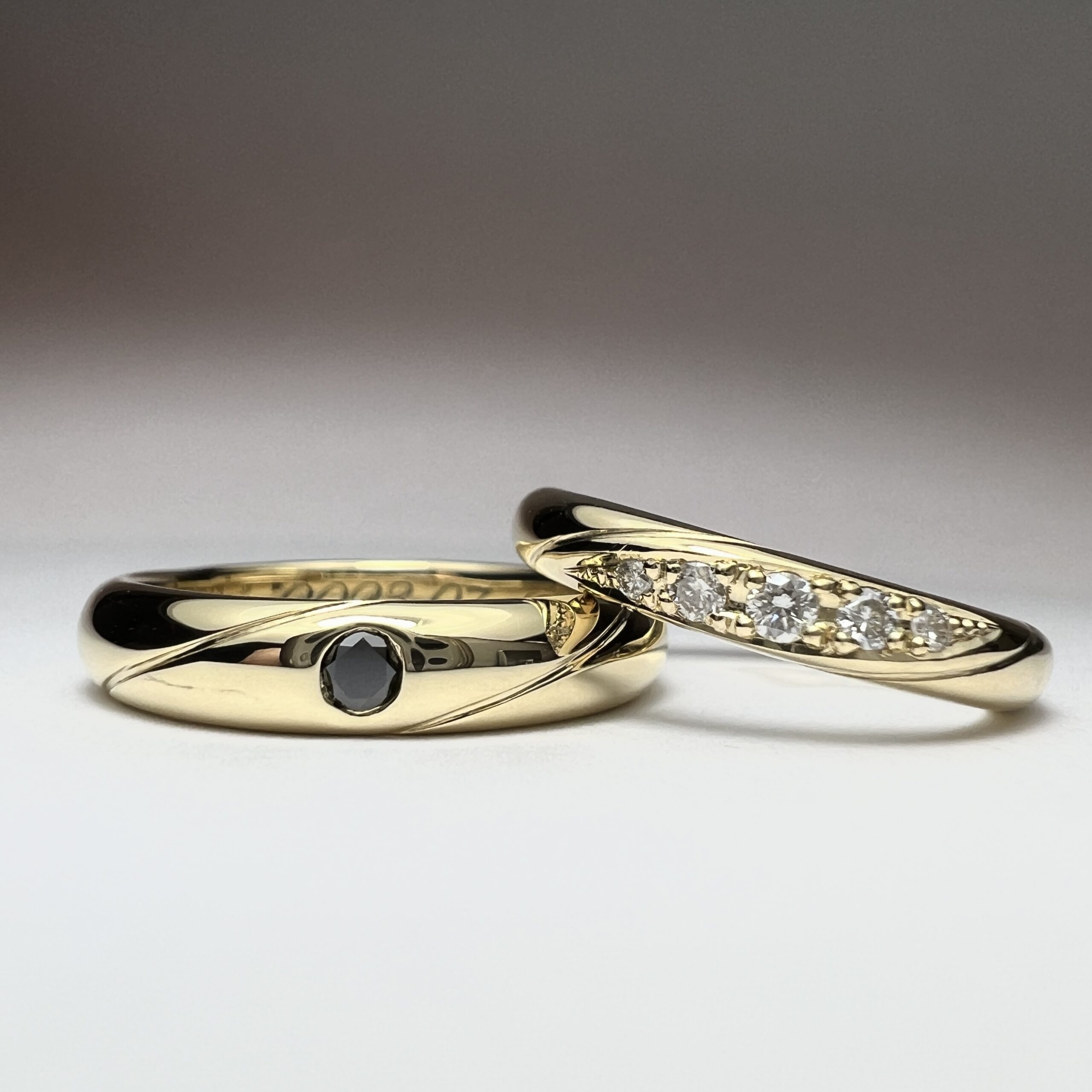 イエローゴールドは、結婚指輪に選ばれることも多い素材のひとつです。柔らかく傷がつきやすい貴金属ですが、イエローゴールドは割金を配合し耐久性を上げているため、変色しにくく、鮮やかな金色を長くお楽しみいただけます。定期的なメンテナンスを行うことで、さらに長くご愛用いただけます。