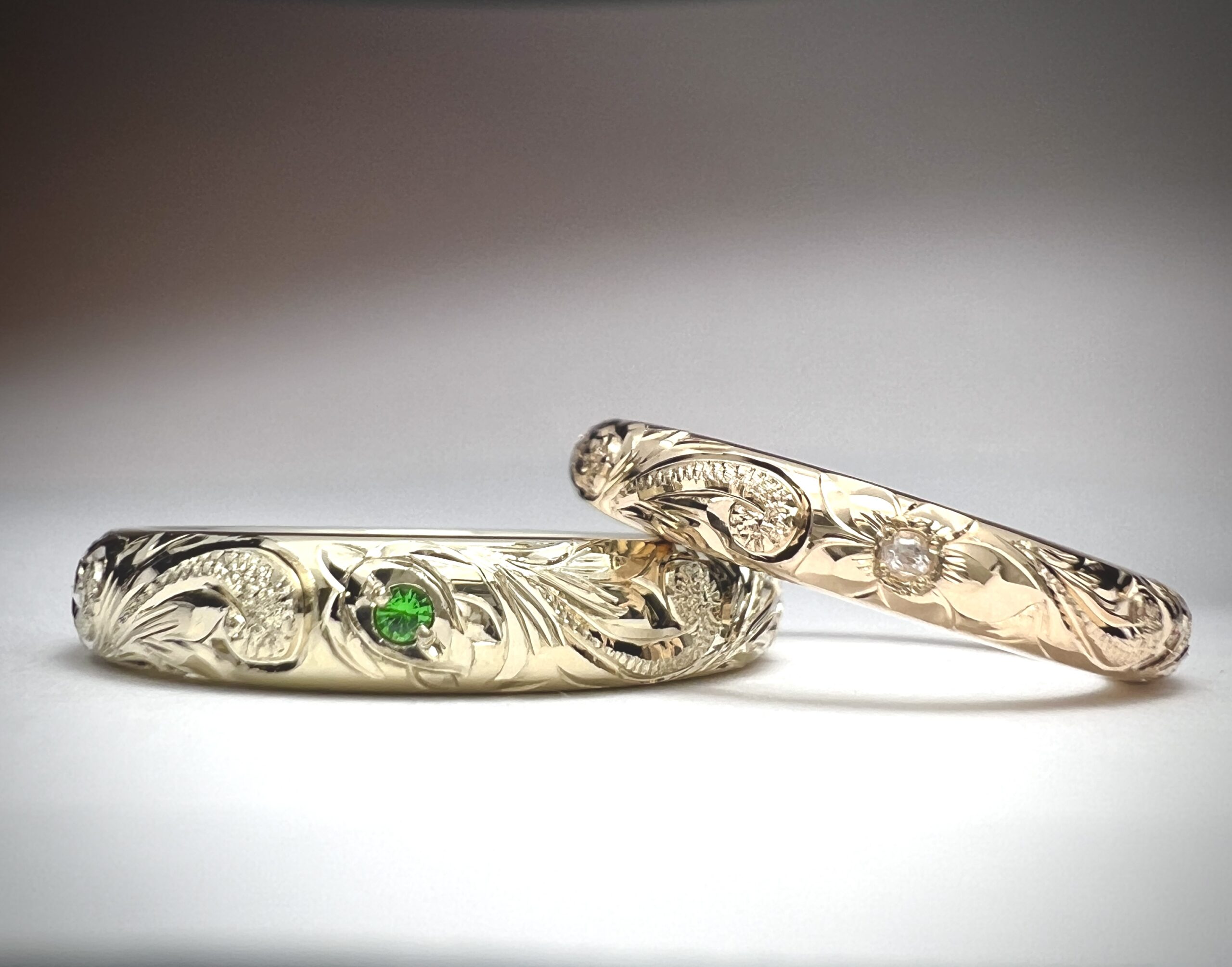 K18ピンクゴールドは、ゴールドに銅を配合し、耐久性を上げているのが特徴です。ゴールドよりも耐久性が高く、特別な思い入れや、愛着のあるリングを長くご愛用いただけます。定期的なメンテナンスを行うことで、綺麗なピンク色を長い間お楽しみいただくことが可能です。