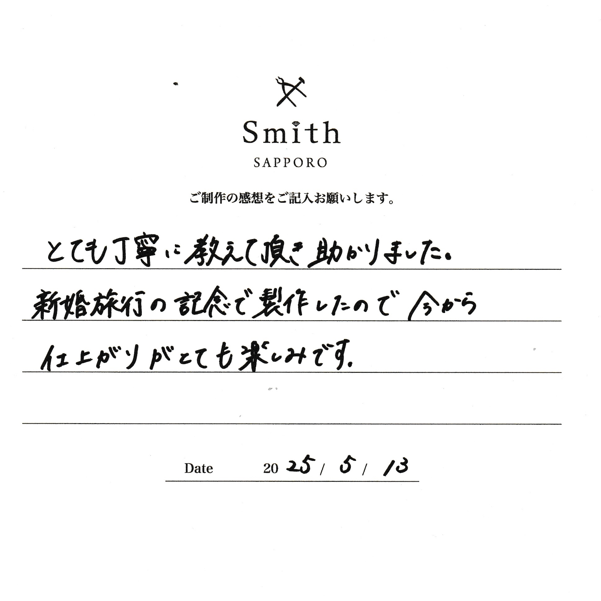 本日は数あるお店の中から大切なペアリングご制作に当店をお選びいただきありがとうございます。