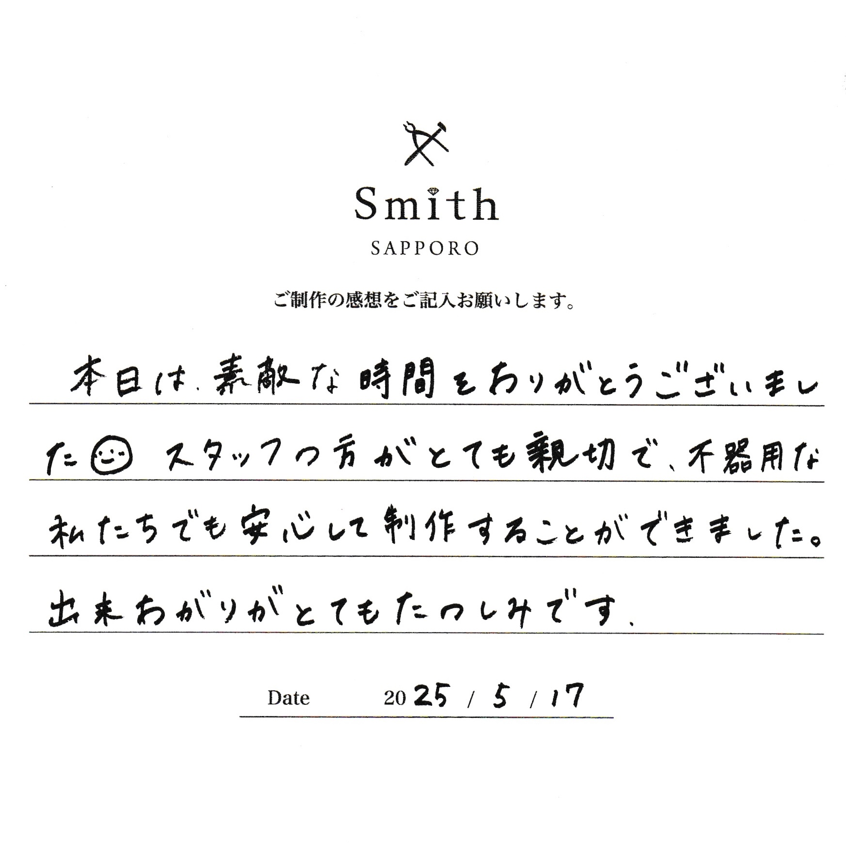 この度は、手作り結婚指輪のご制作に当店をお選びいただき、誠にありがとうございました。
