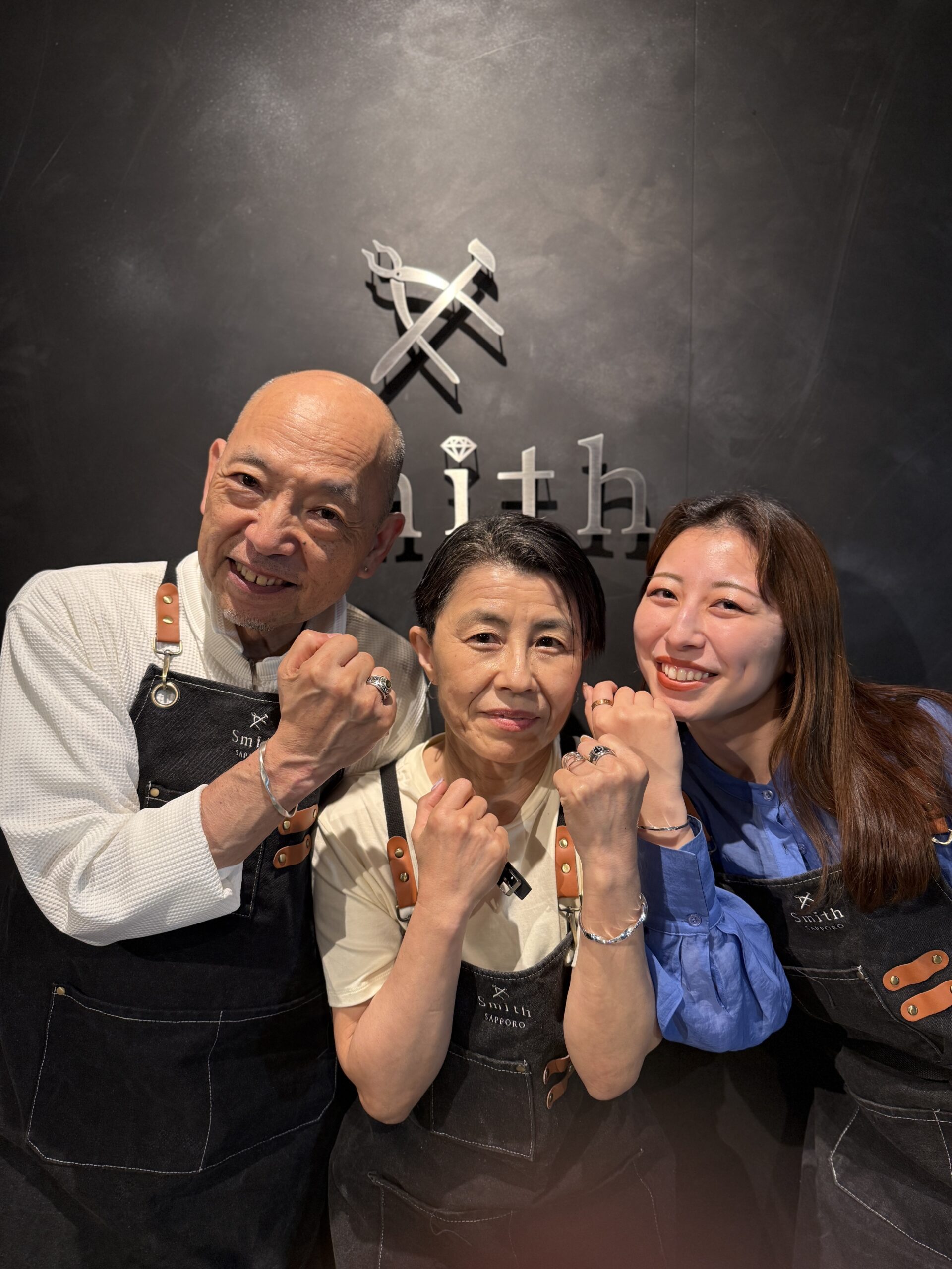 家族で北海道に、遠方よりご旅行の初日にご来店くださり、家族3人仲良くバングルを手作りして下さいました。