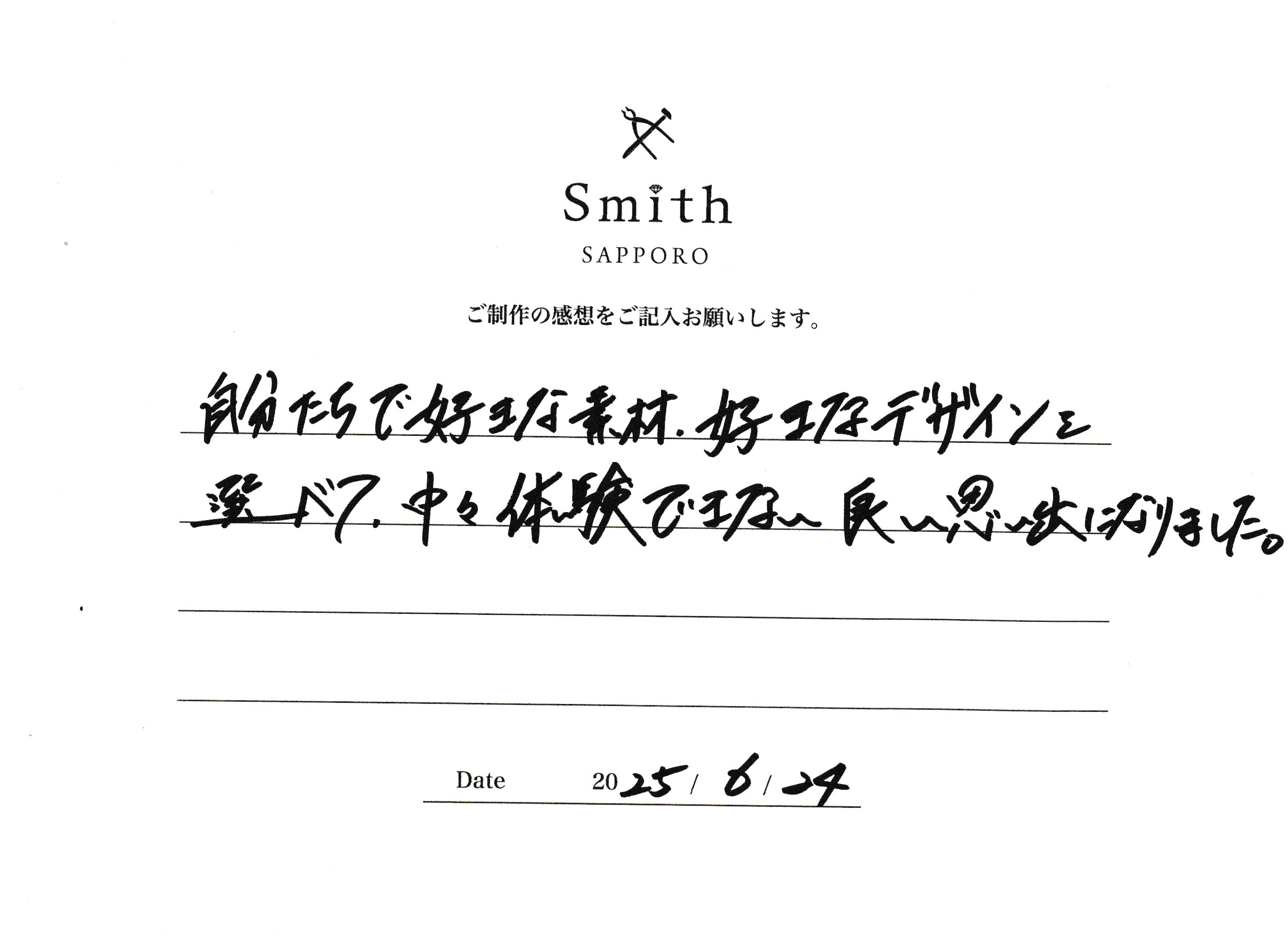 自分たちで好きな素材、好きなデザインを選べて、中々体験出来ない良い思い出になりました。