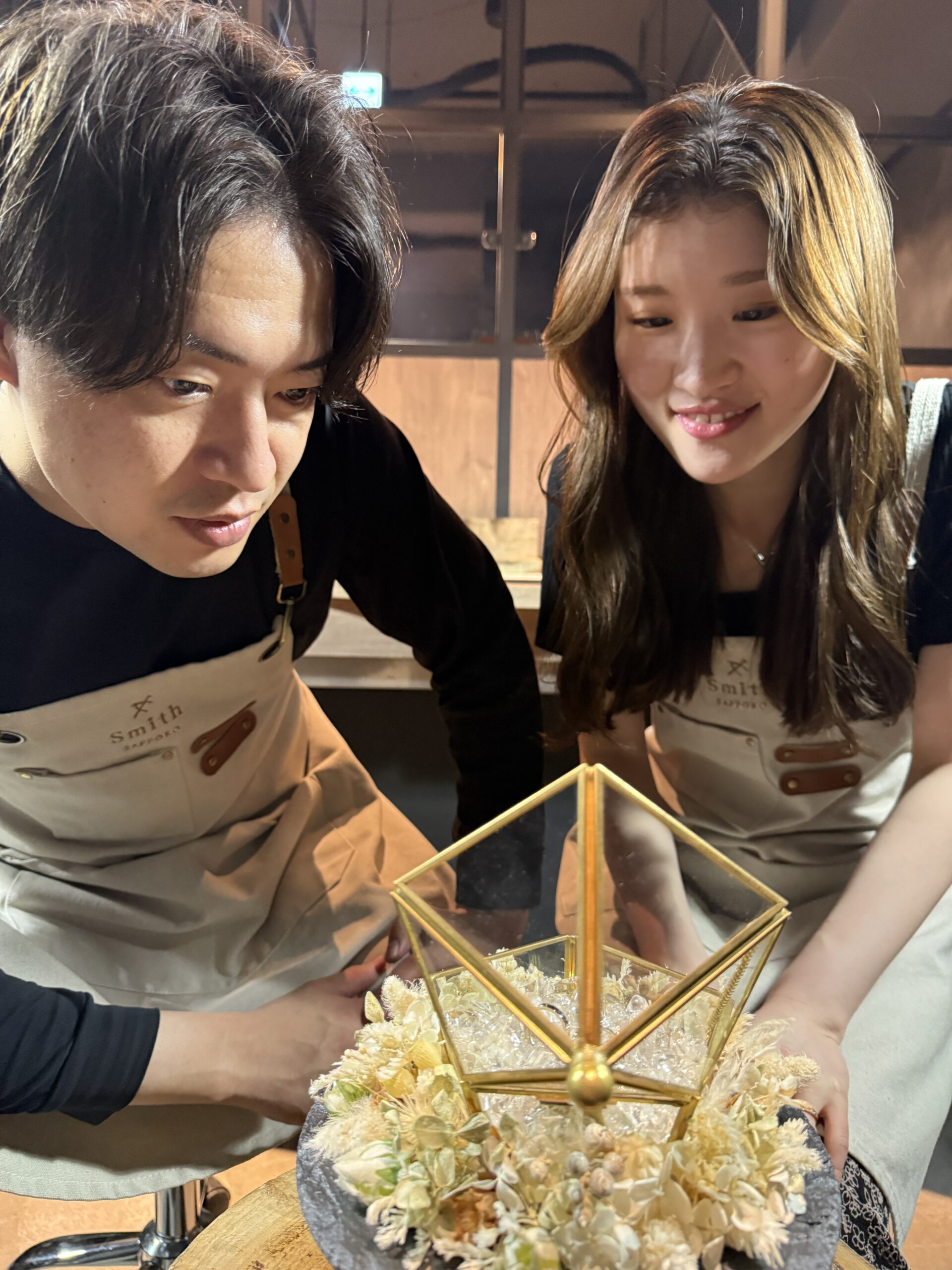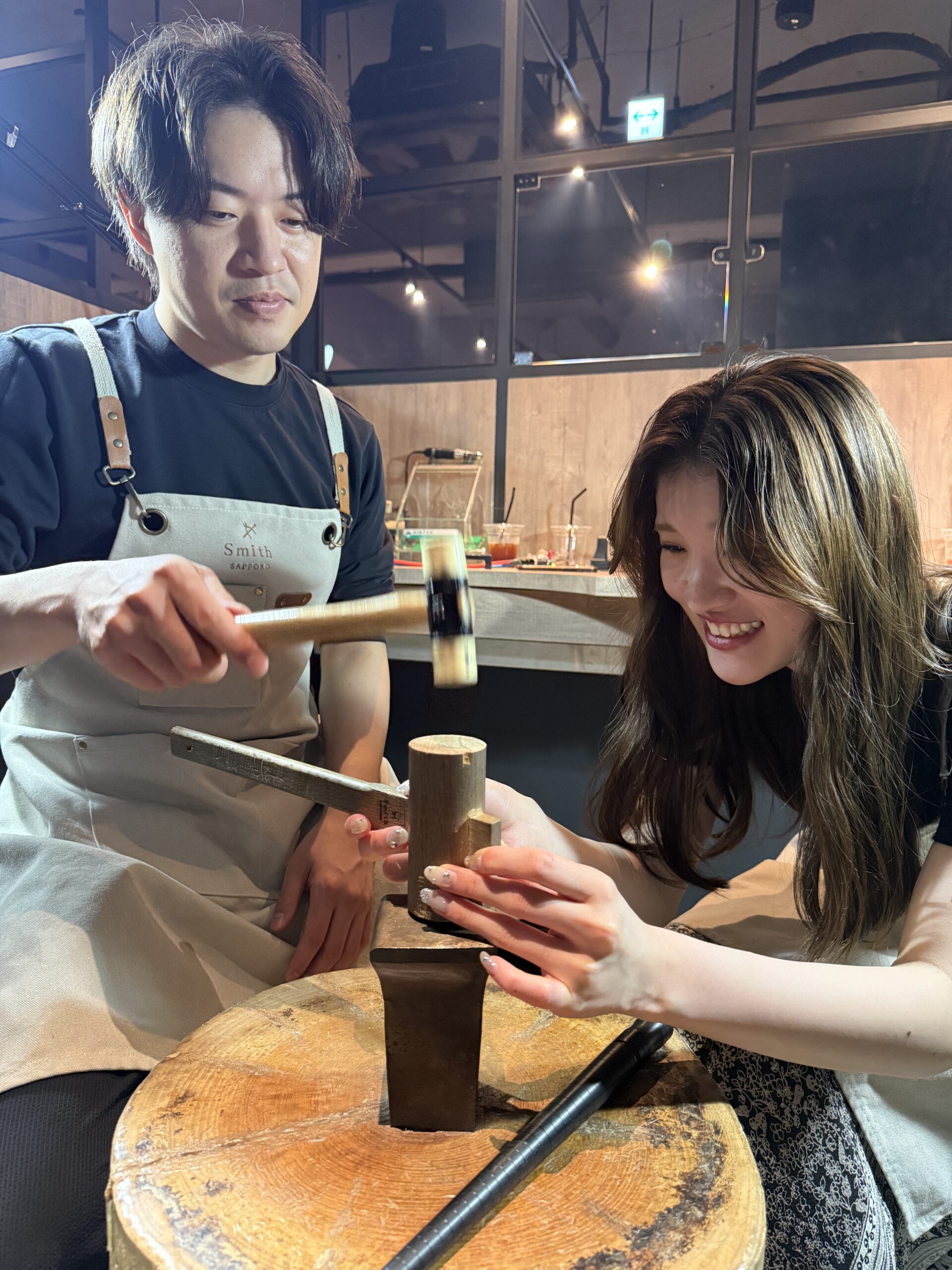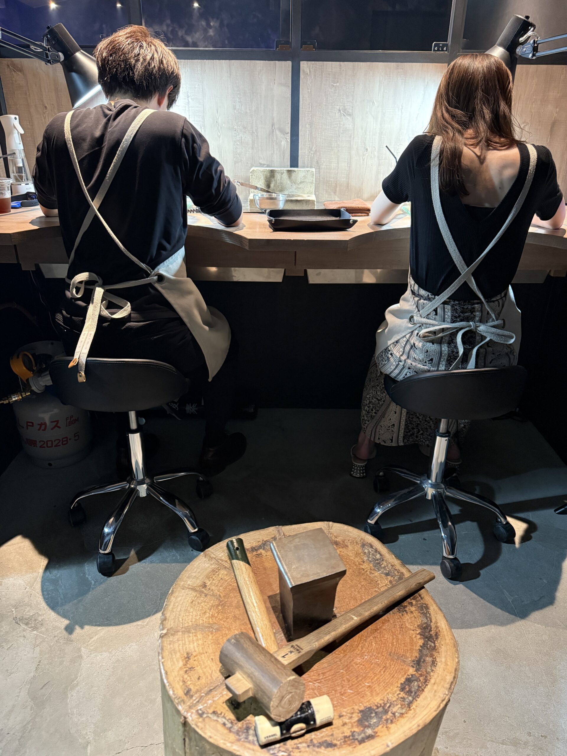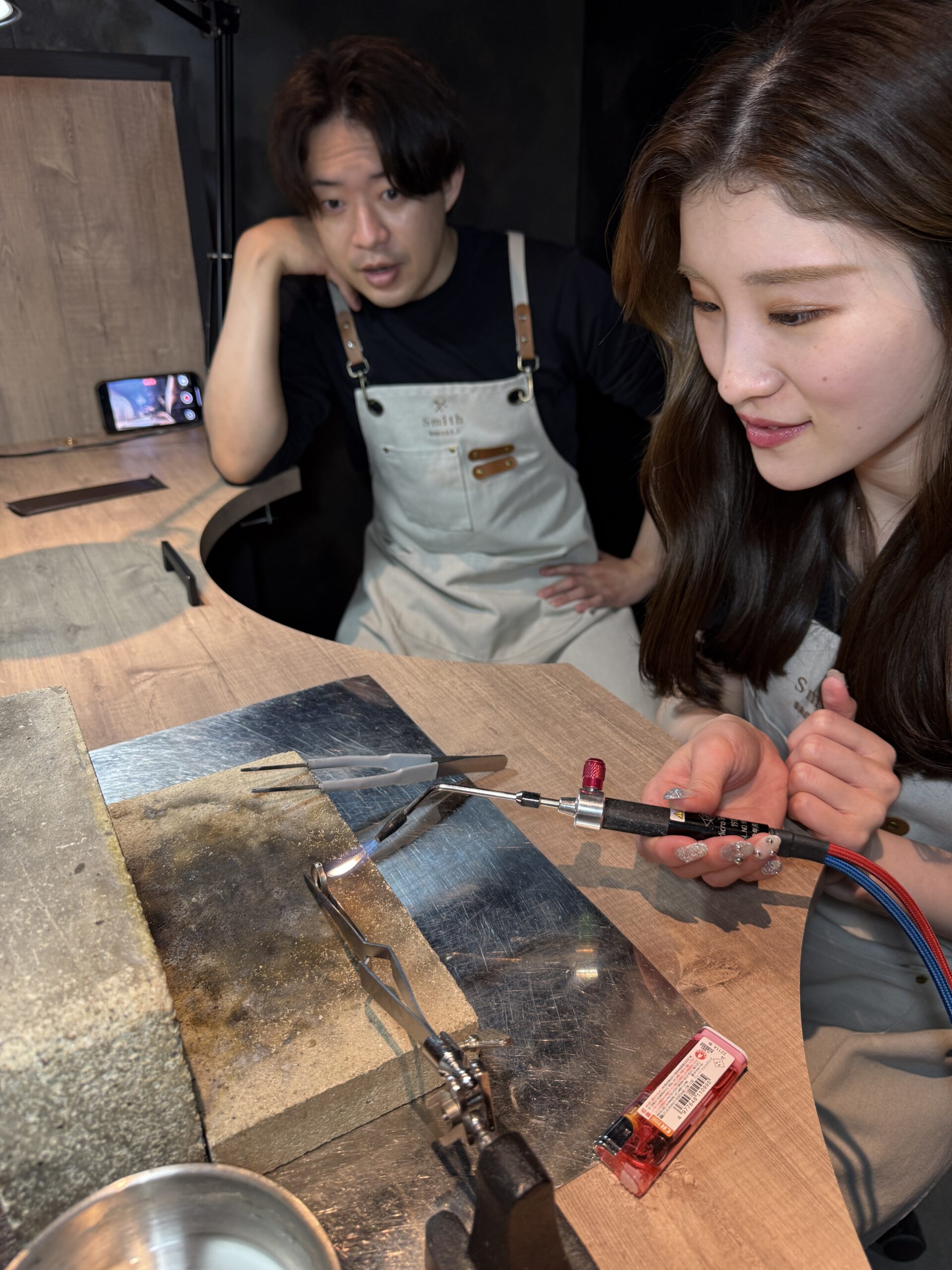 優しい雰囲気でスタイリッシュなお二人は、お打ち合わせから終始和やか。ご制作では職人肌のご主人と明るく一生懸命な奥様の息の合った作業がとても印象的でした。少し緊張気味なスタートでしたが丁寧に作業を進め、完成した指輪はお二人らしくおしゃれで綺麗な仕上がりになりましたね。