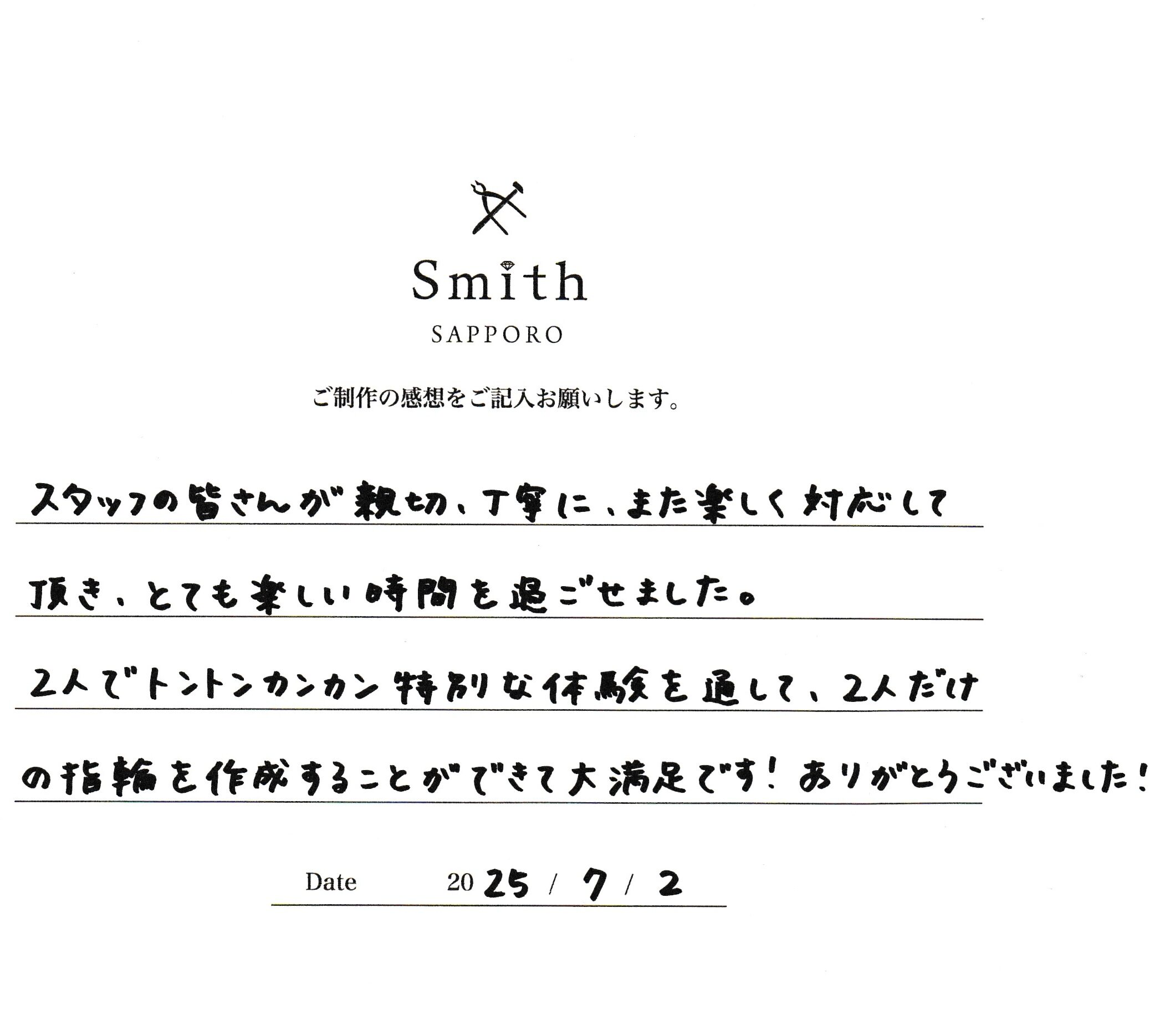 O様・K様【特別な体験を通して、2人だけの指輪を作成することができて大満足です】