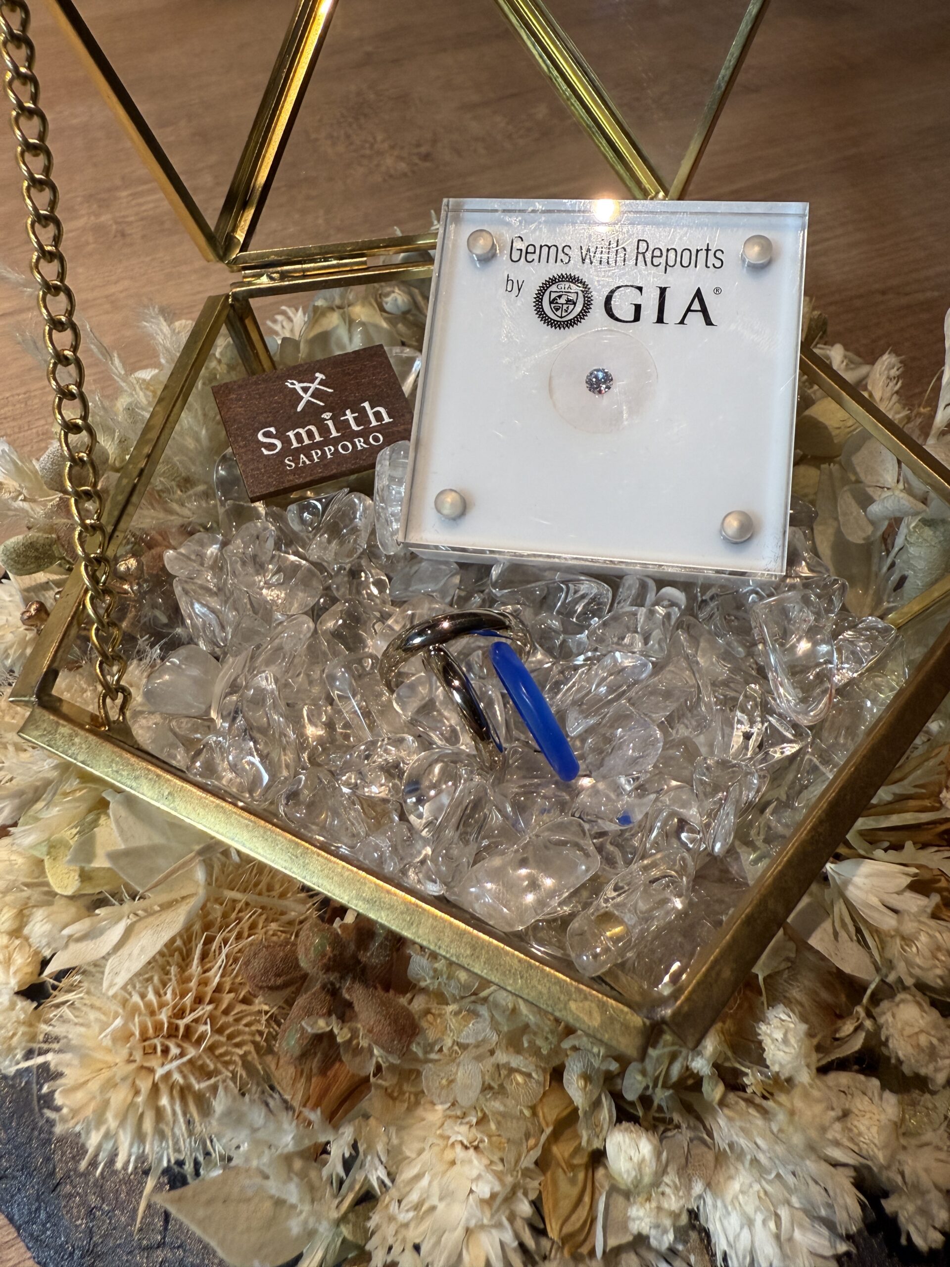 デザインはとてもこだわっていただき、奥様、旦那様ともにダイヤモンドが5石入ったデザインで素材はシャンパンゴールドと、とても素敵なデザインになりましたね。