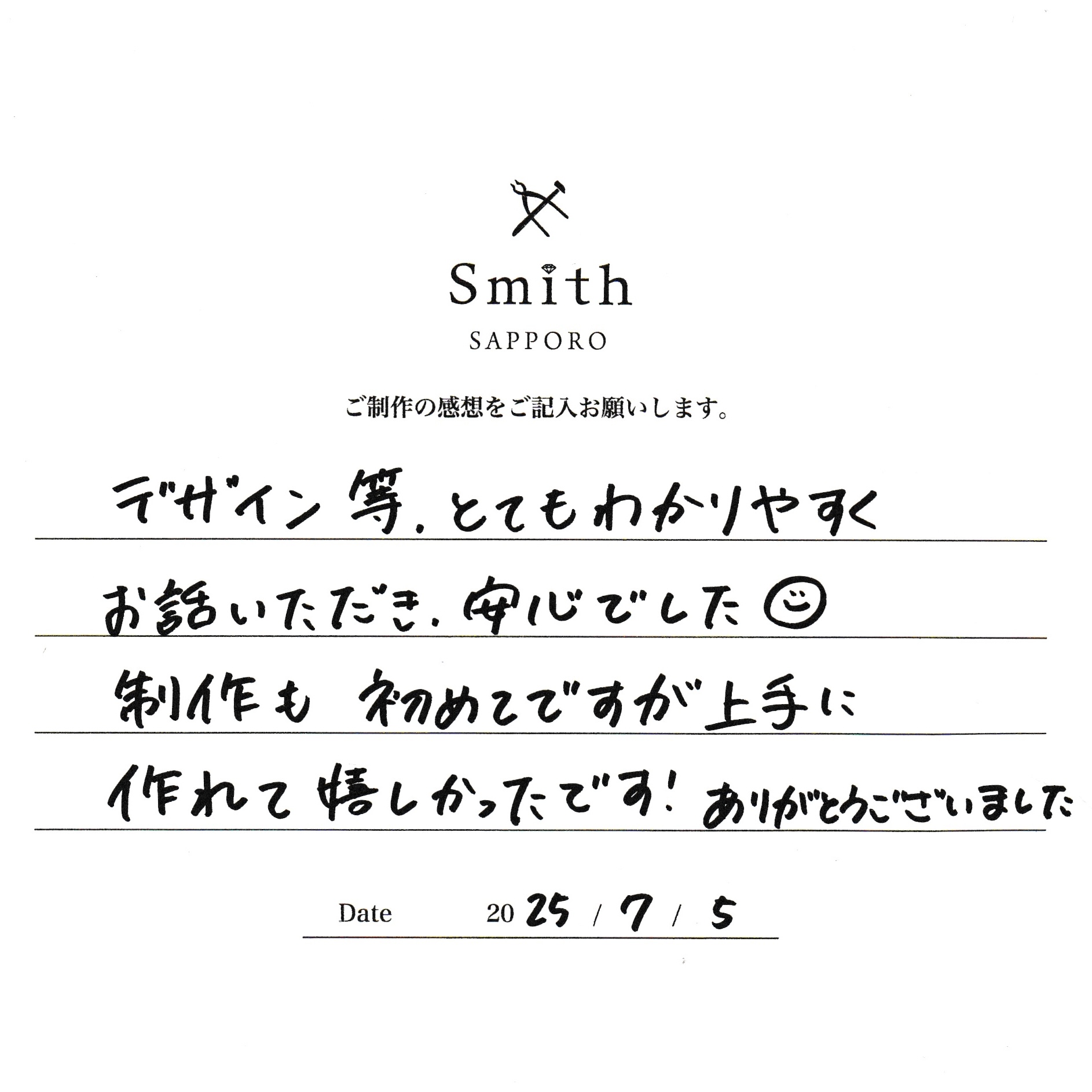 先日は手作り結婚指輪の制作に当店へご来店いただき、誠にありがとうございました。