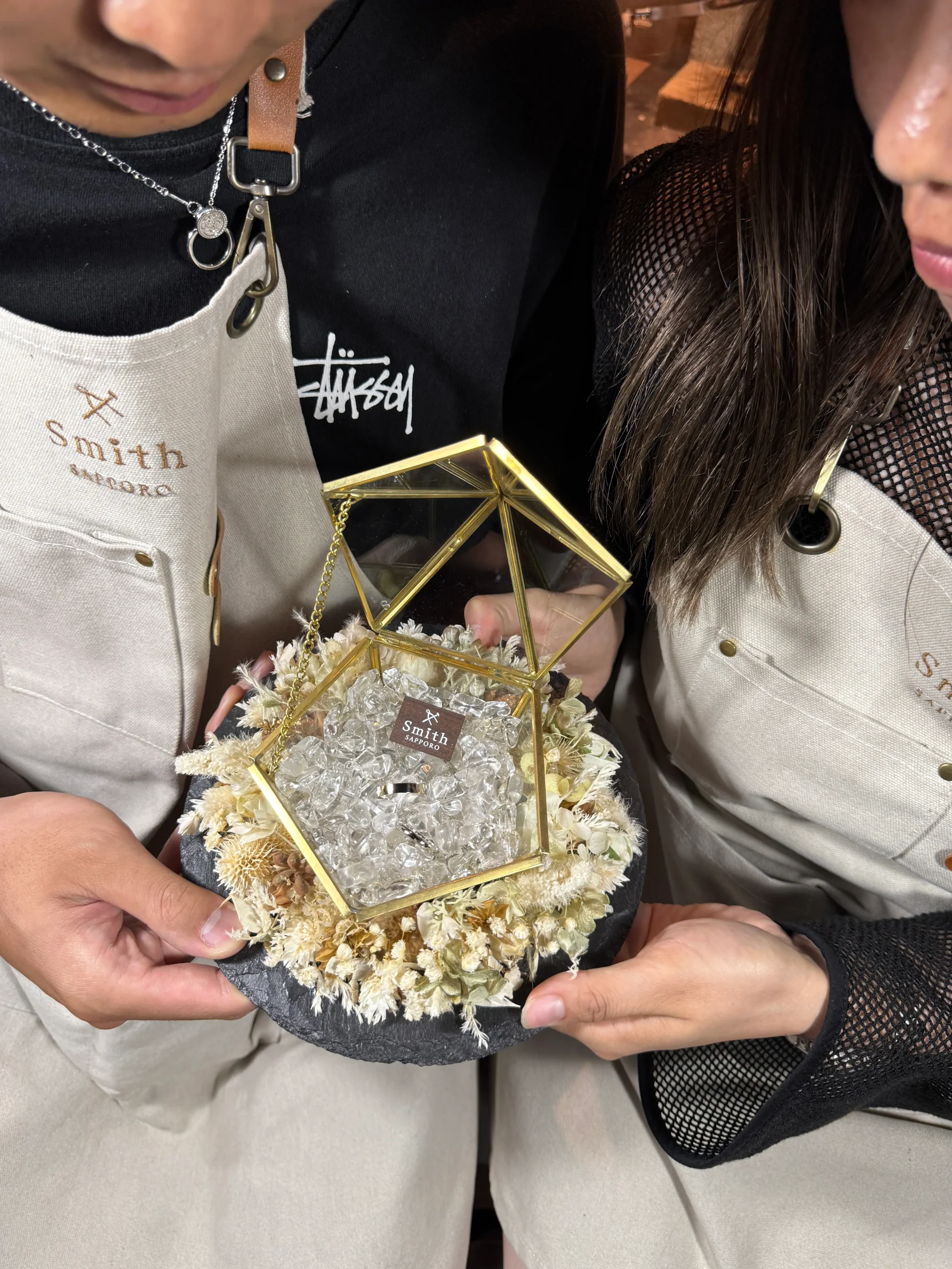 笑顔の絶えない明るいお二人はご制作中も終始楽しそうで、こちらも幸せなひとときを過ごすことができました。思い出深い1日になったのなら、こちらも嬉しく思います。どうぞ末永くお幸せに。