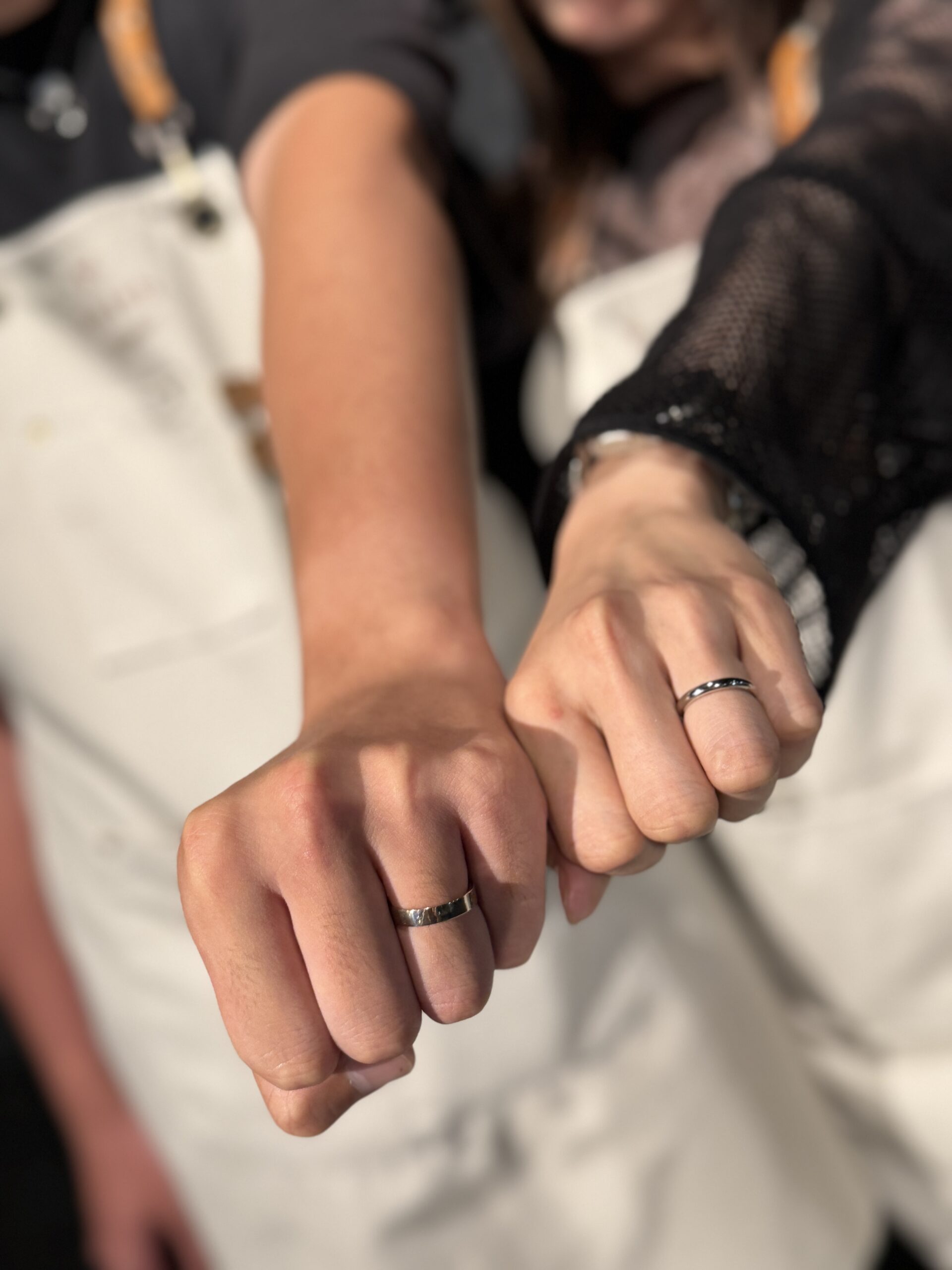 七夕の佳き日にご入籍、その足で結婚指輪のご制作にお越しいただき、お二人の大切な一日に関わらせていただけたこと、大変光栄です。お選びのデザインはお揃いながらも異なる素材というお二人のセンスが光るものでした。