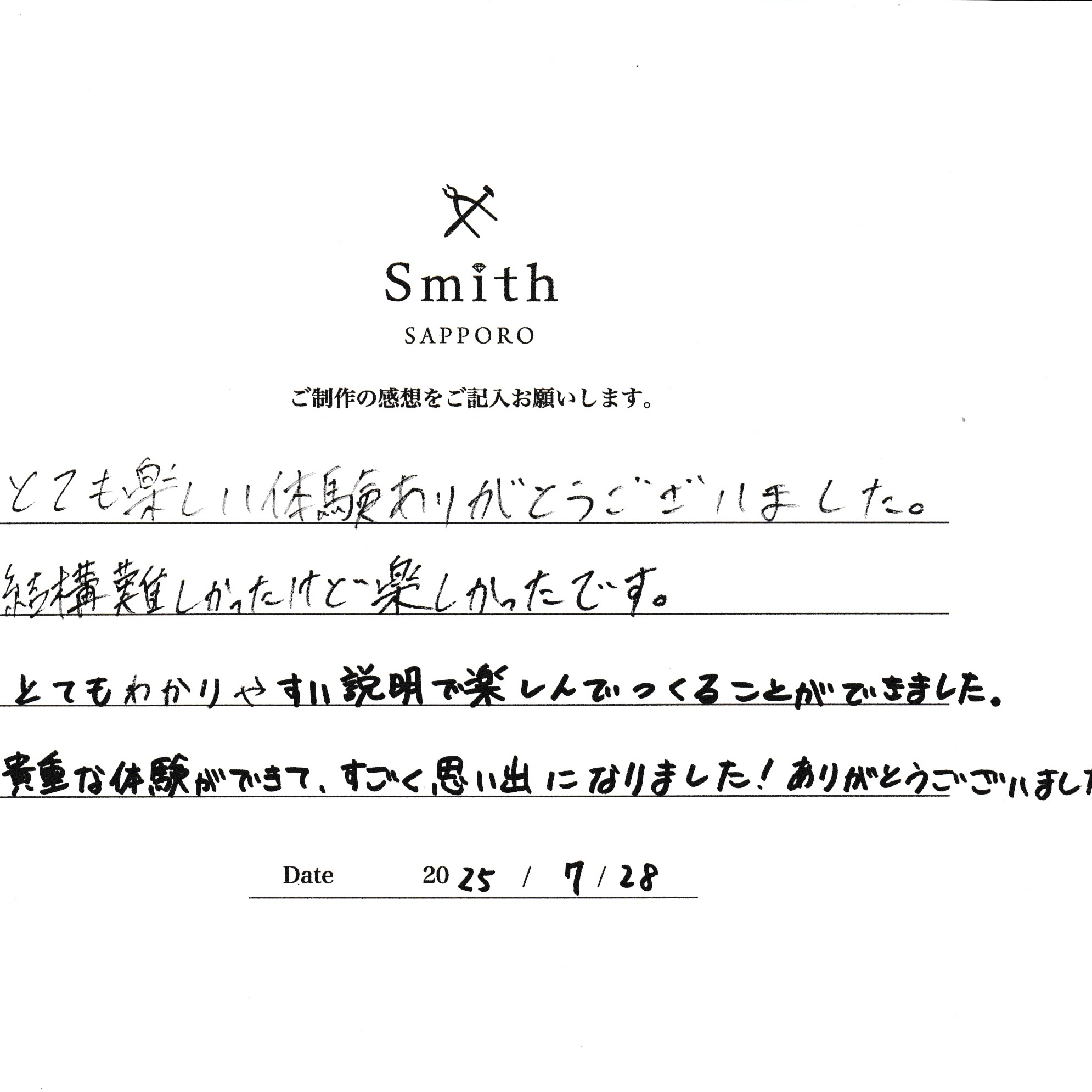 とても分かりやすい説明で楽しんで作ることができました。貴重な体験ができて、すごく思い出になりました!ありがとうございました。