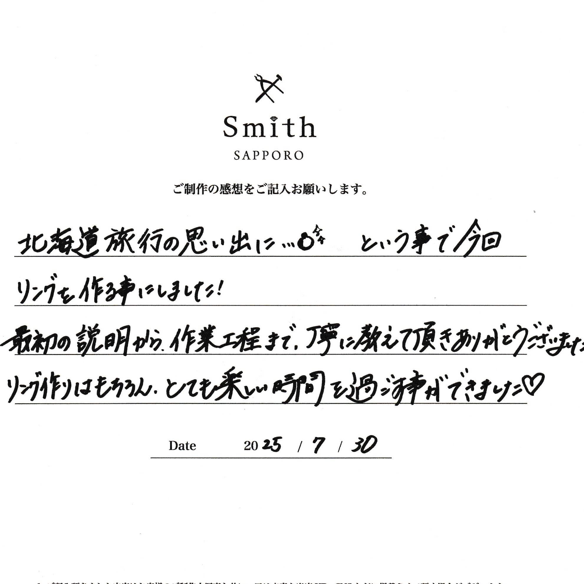 A様・N様【北海道旅行の思い出にリングを作ることにしました】