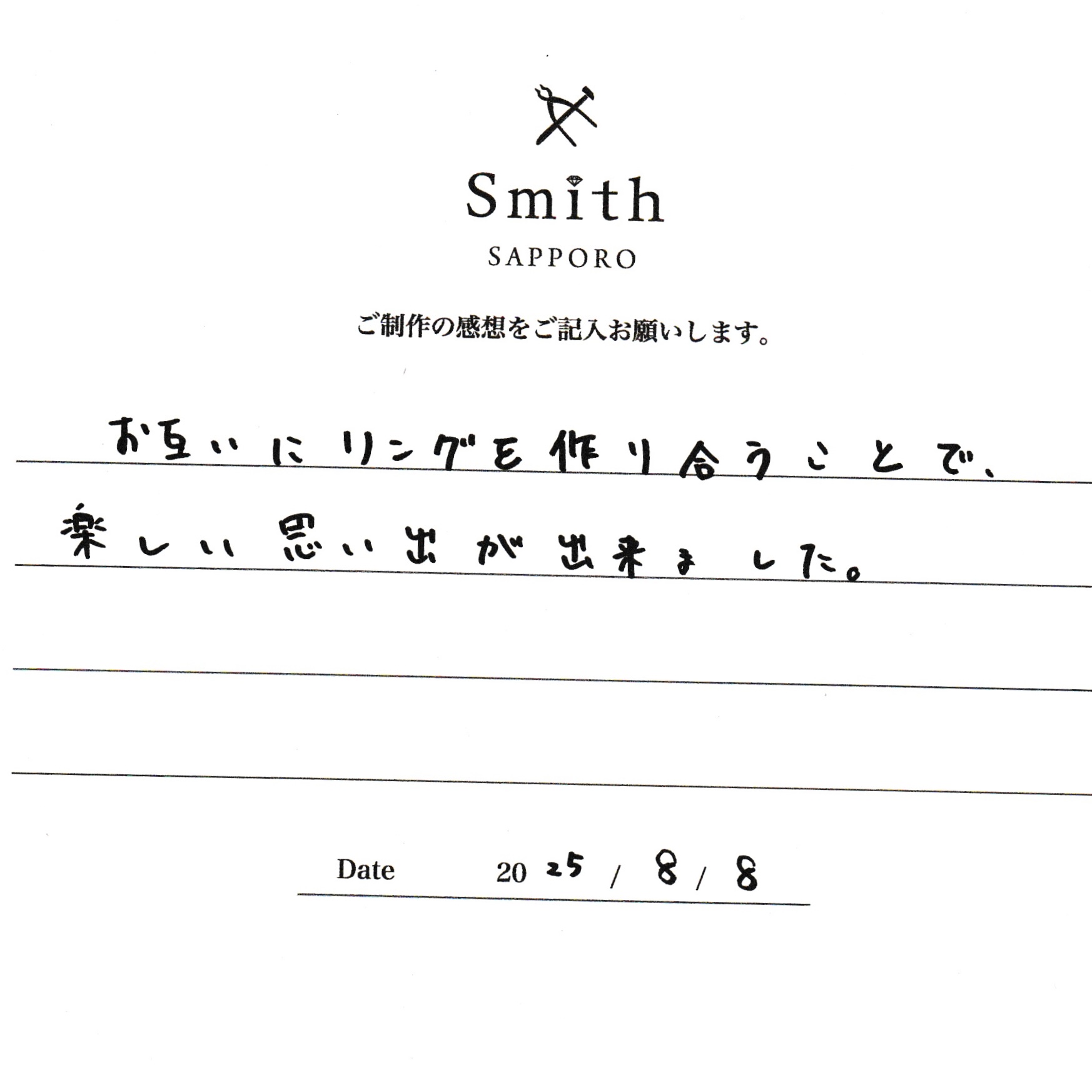 O様・O様【お互いにリングを作り合うことで楽しい思い出が出来ました】