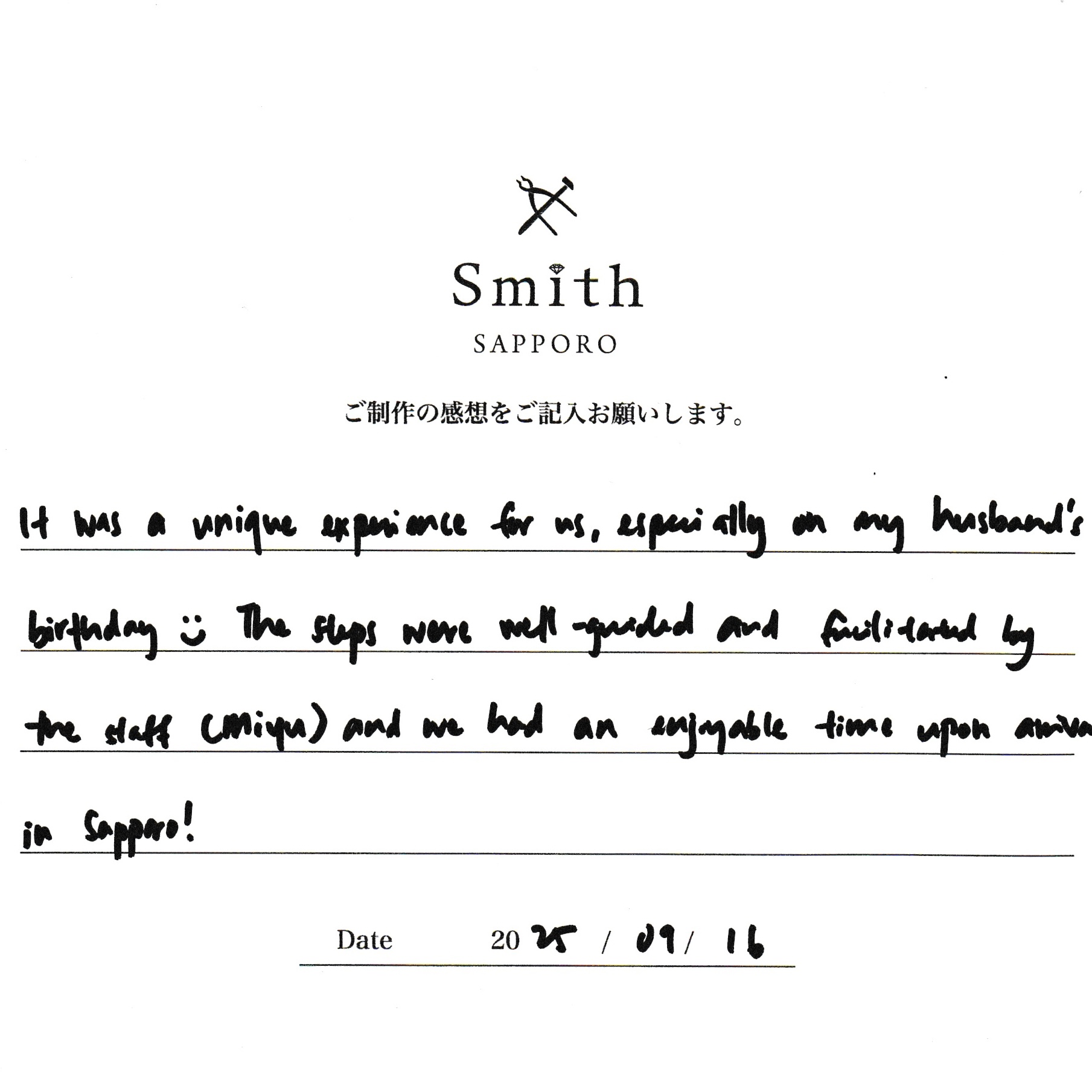 It was a unique experience for us, especially on my husband's birthday. The steps were well-guided and facilitated by the staff and we had an enjoyable time upon arrival in Sapporo!
