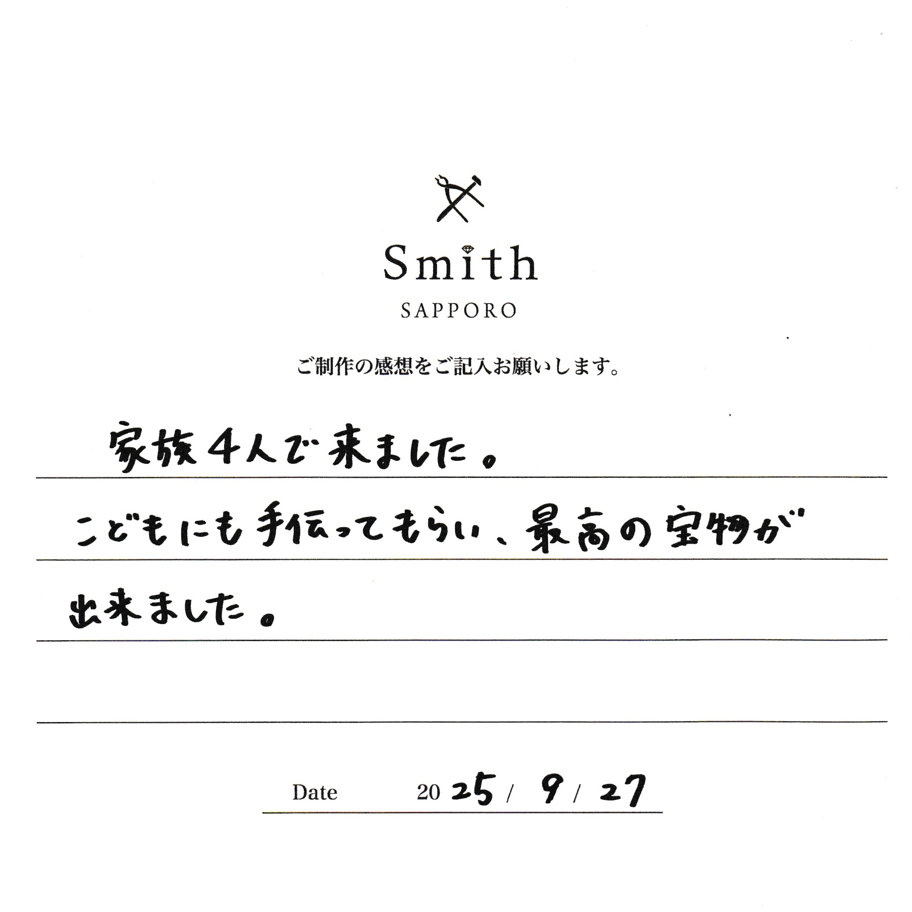 ご家族4名様で協力しながら、それぞれの想いが込められた特別なリングが完成いたしました。お子様が一生懸命制作に参加されるご様子がとても微笑ましく、ご家族の絆を感じる温かなひとときでした。