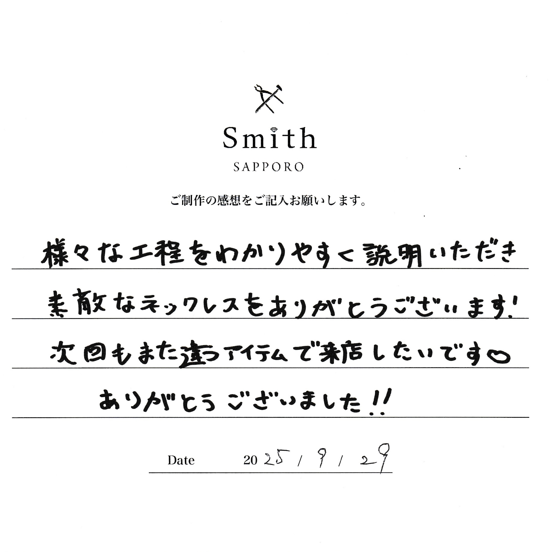 様々な工程をわかりやすく説明いただき、素敵なネックレスをありがとうございます!