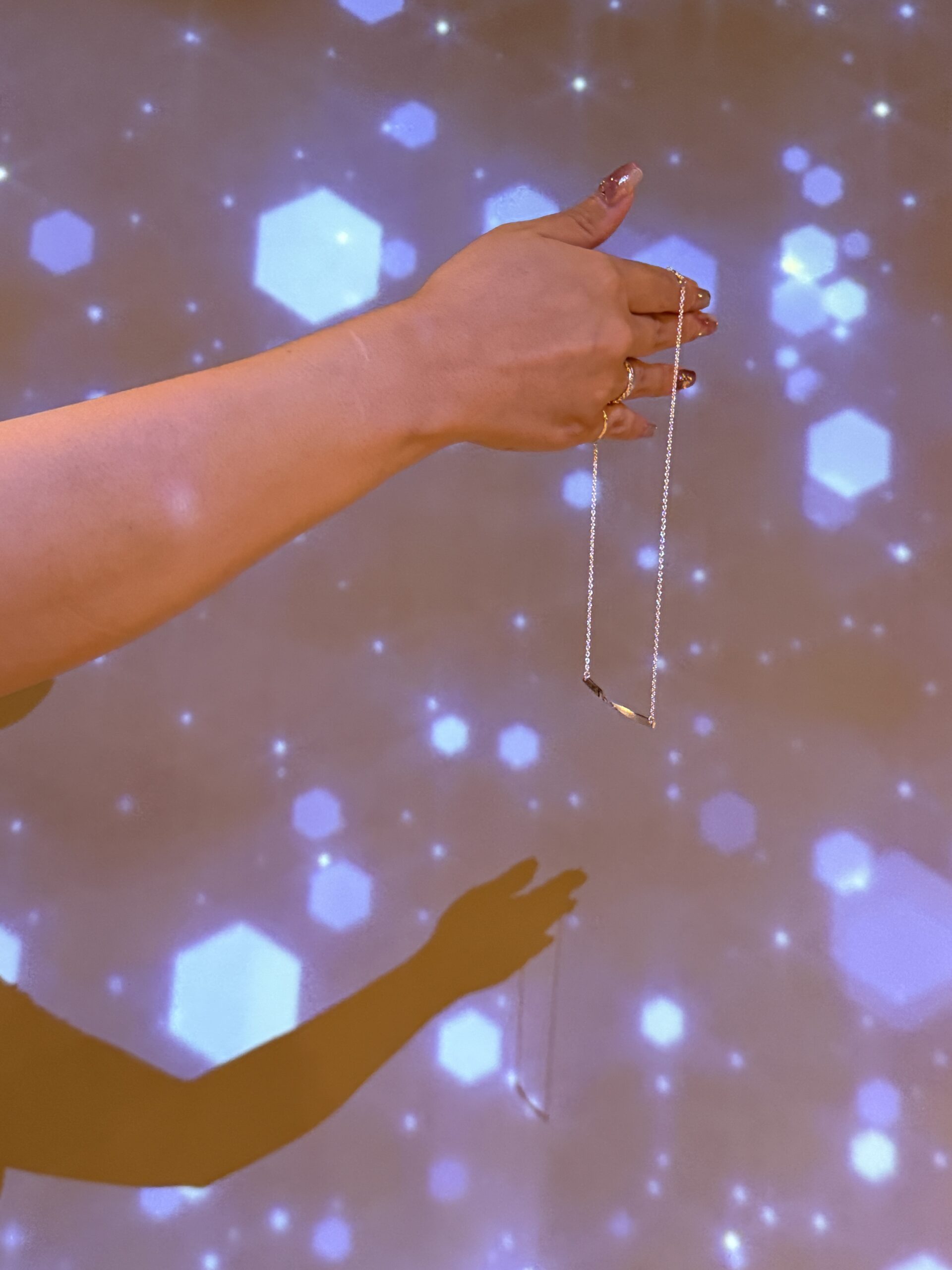 どの作業も丁寧でメビウスのひねりも美しく、鏡面とスターダストのテクスチャーが際立つとても素敵なネックレスが完成しましたね。