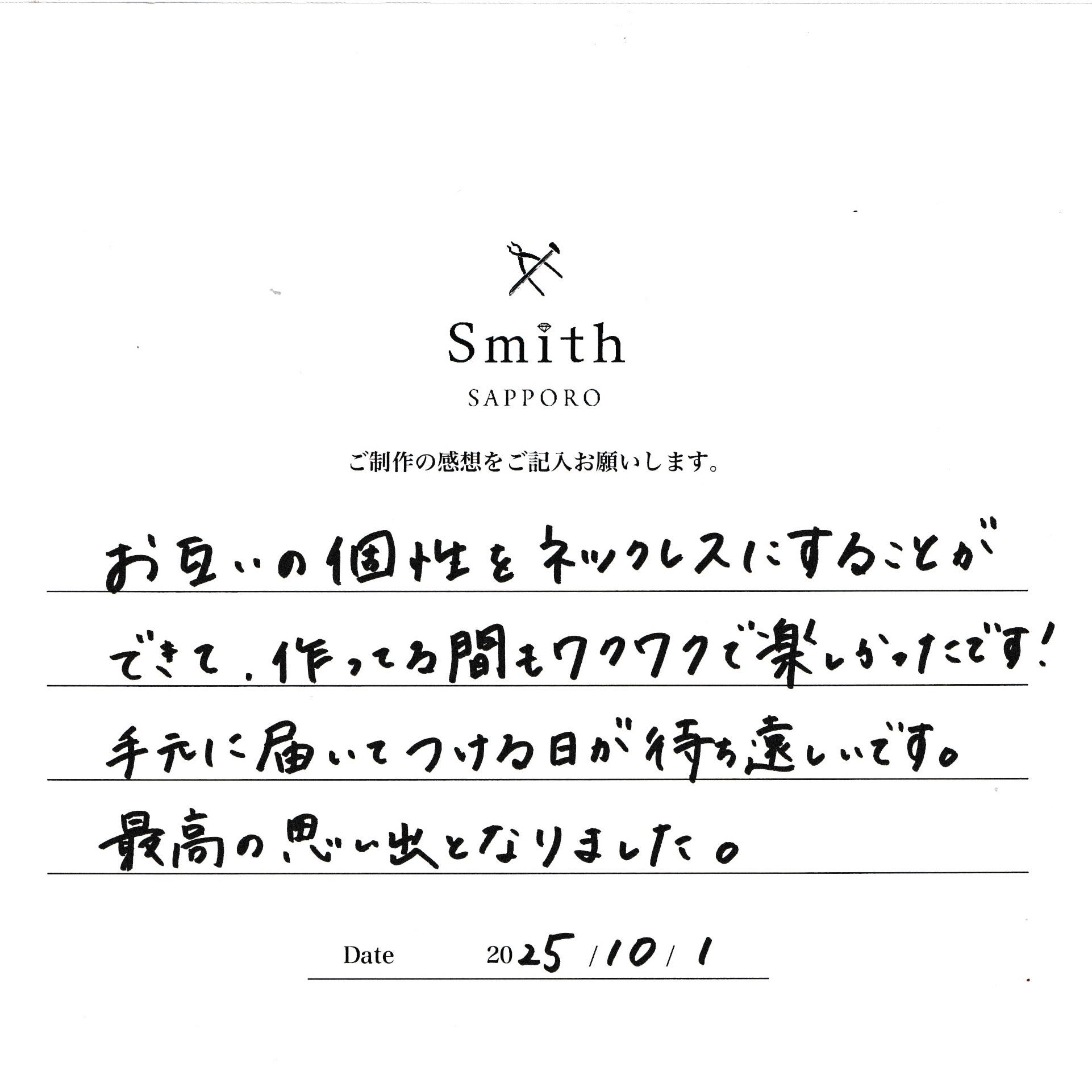 T様・K様【お互いの個性をネックレスにすることができて楽しかったです】