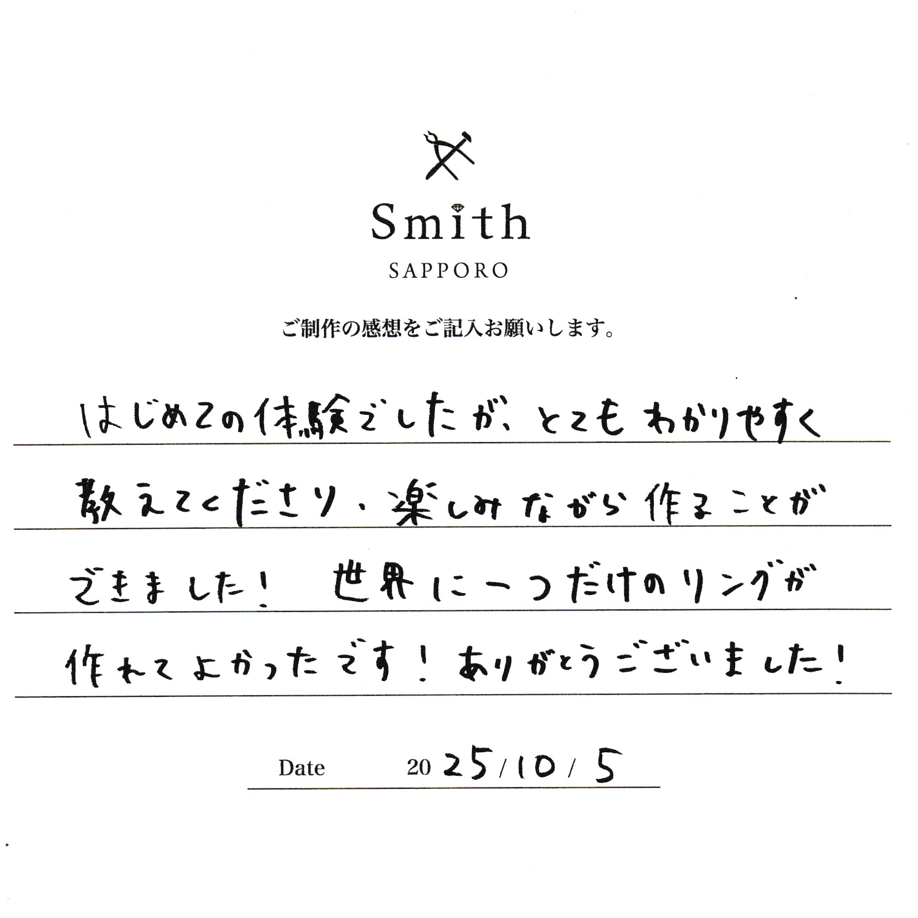 この度は、ご家族で手作りシルバーリングのご制作にご来店いただきまして、誠にありがとうございます。