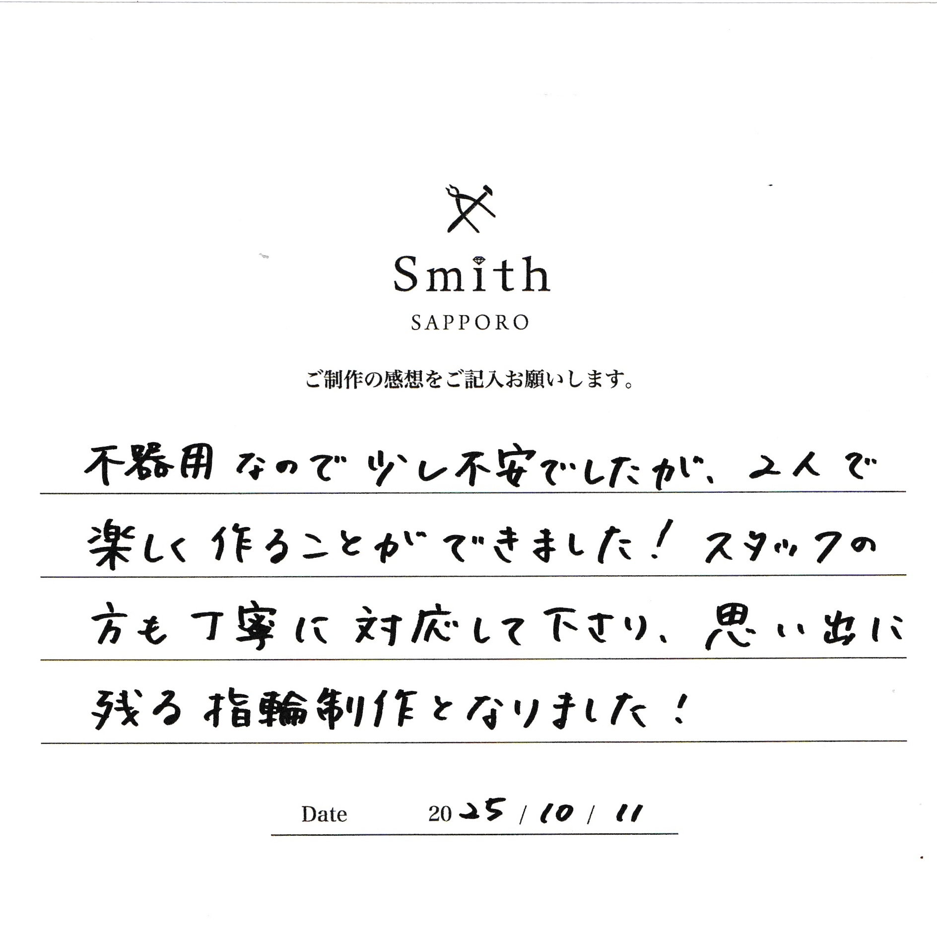スタッフの方も丁寧に対応してくださり、思い出に残る指輪制作となりました!