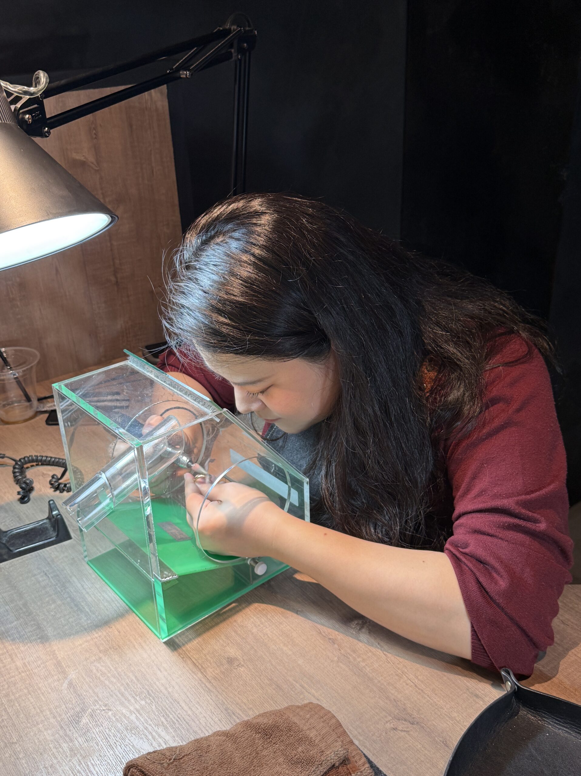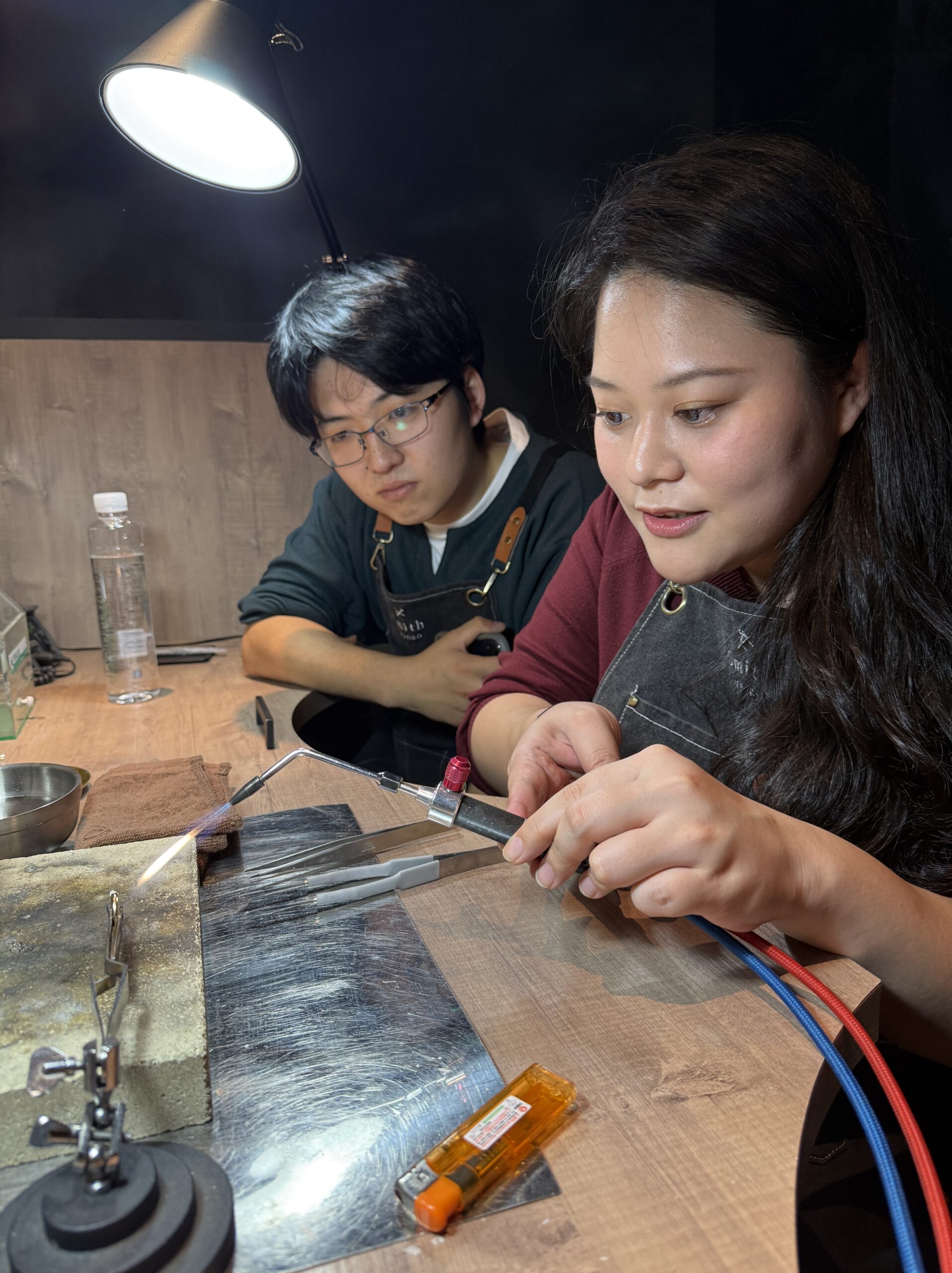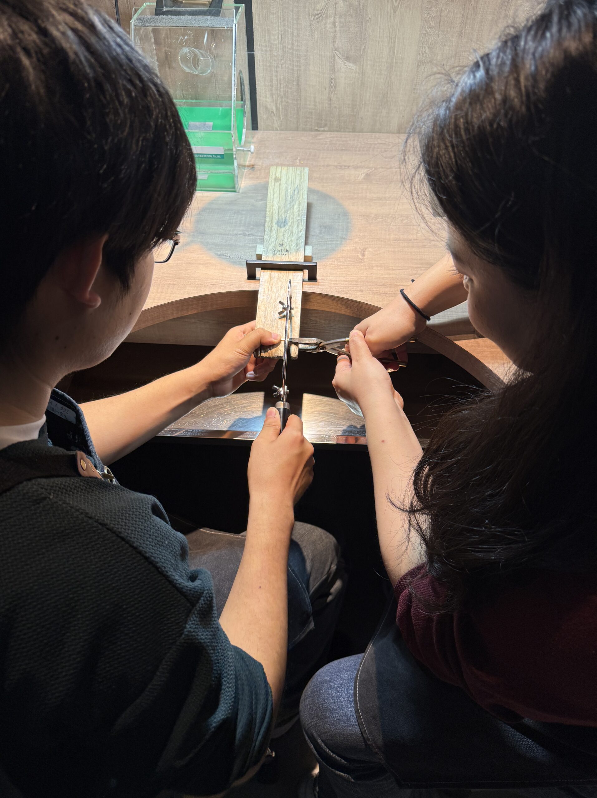 とにかく明るい奥様と、少し緊張気味ながらも優しいご主人。お二人で思いやりながら指輪を作る姿がとても微笑ましく、私も心温まりました。