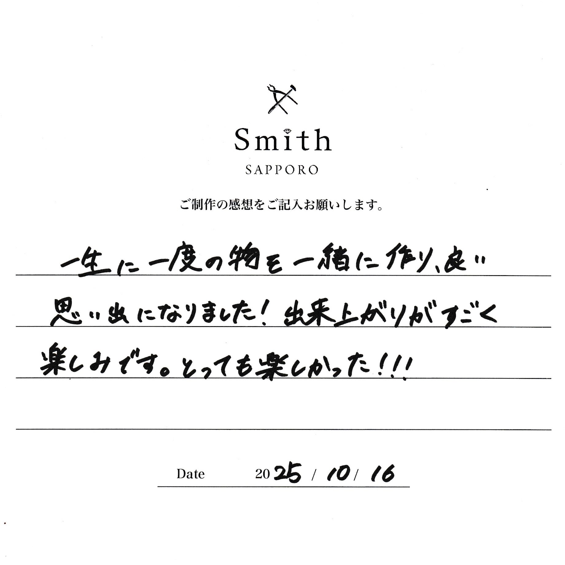 一生に一度の物を一緒に作り良い思い出になりました!