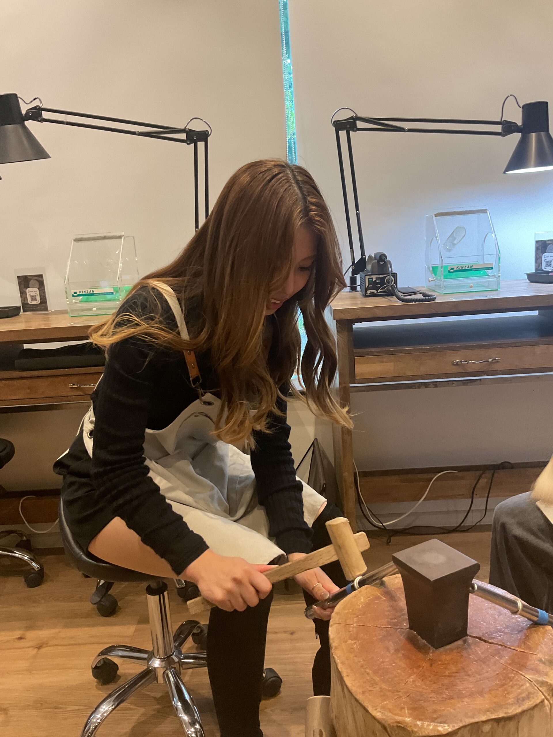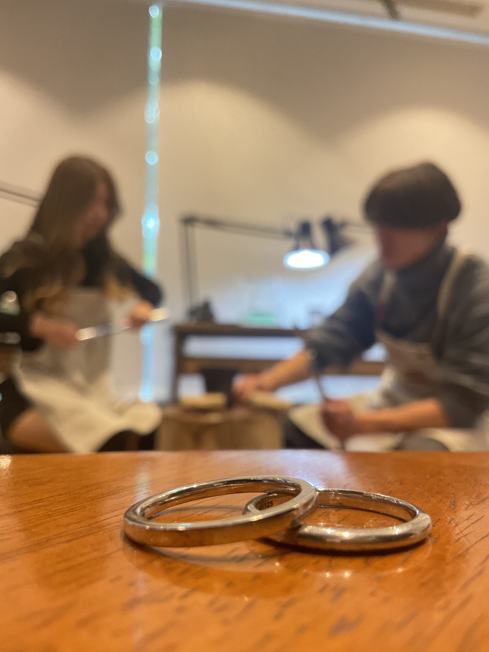 基本の形は2mm3mmの平打ちリングに、テクスチャーは鏡面とスターダストをお選びいただきました。