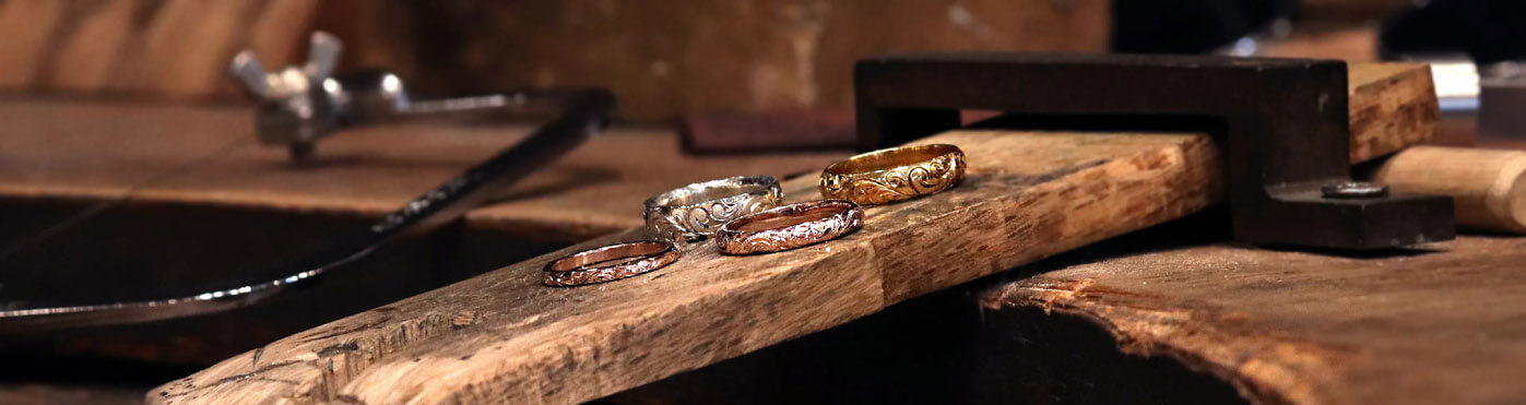 手作りご希望のお客様には指輪のアーム部分を制作していただき、その後工房Smith札幌の職人がハワイアン彫刻を施します。