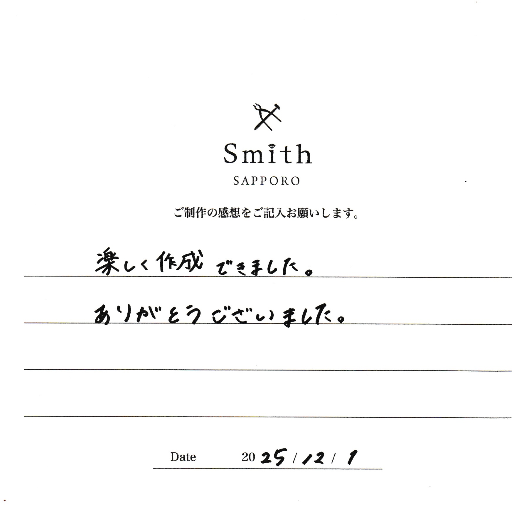 一から指輪を作るのは初めての体験でとても楽しく、一生の思い出になりました。