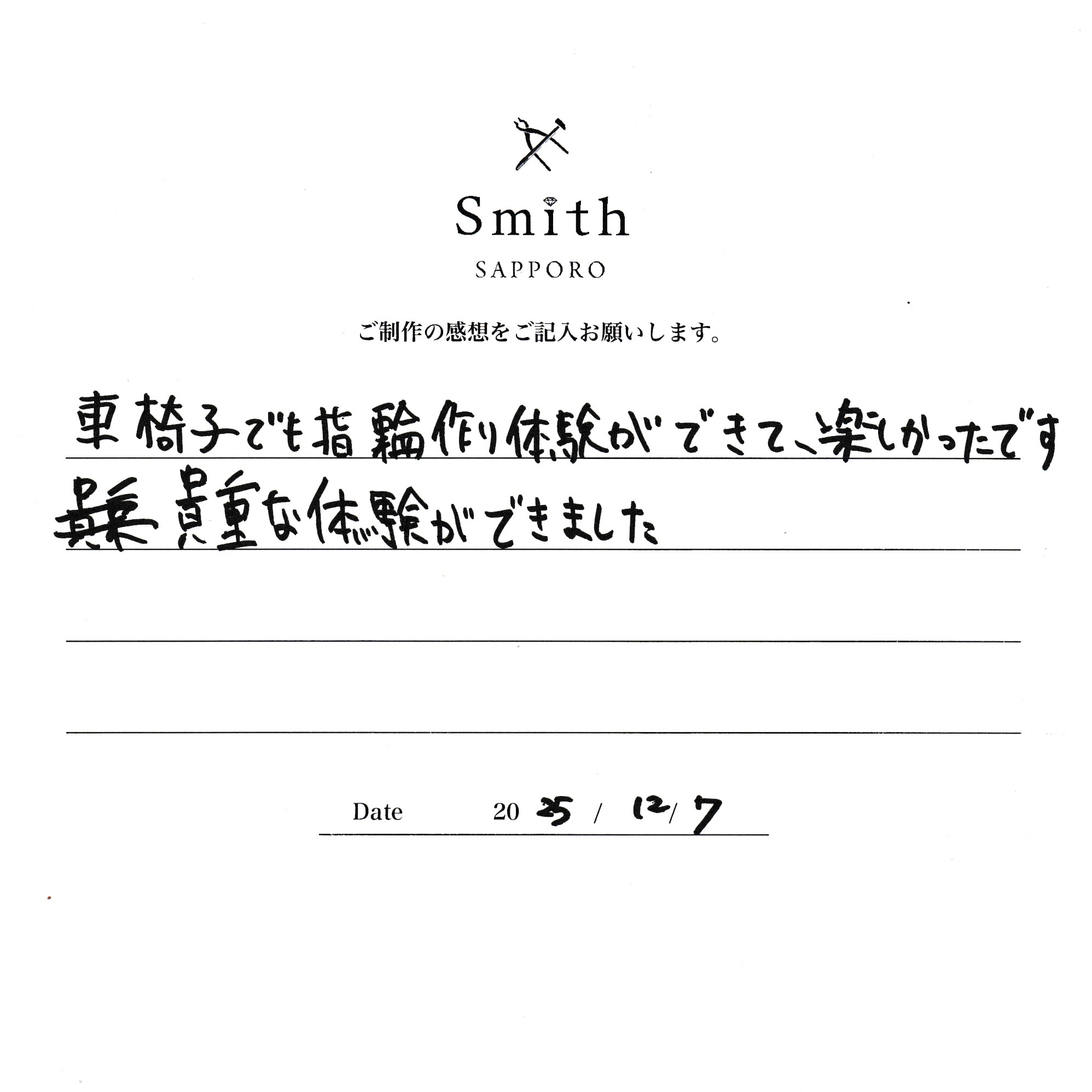 |H様【車椅子でも指輪作り体験ができて楽しかったです】