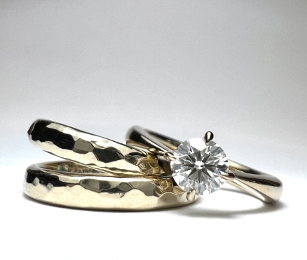 キャストで作ることが多い既製品に対して、手作り指輪は叩いて圧縮するので強度も心配いりません。