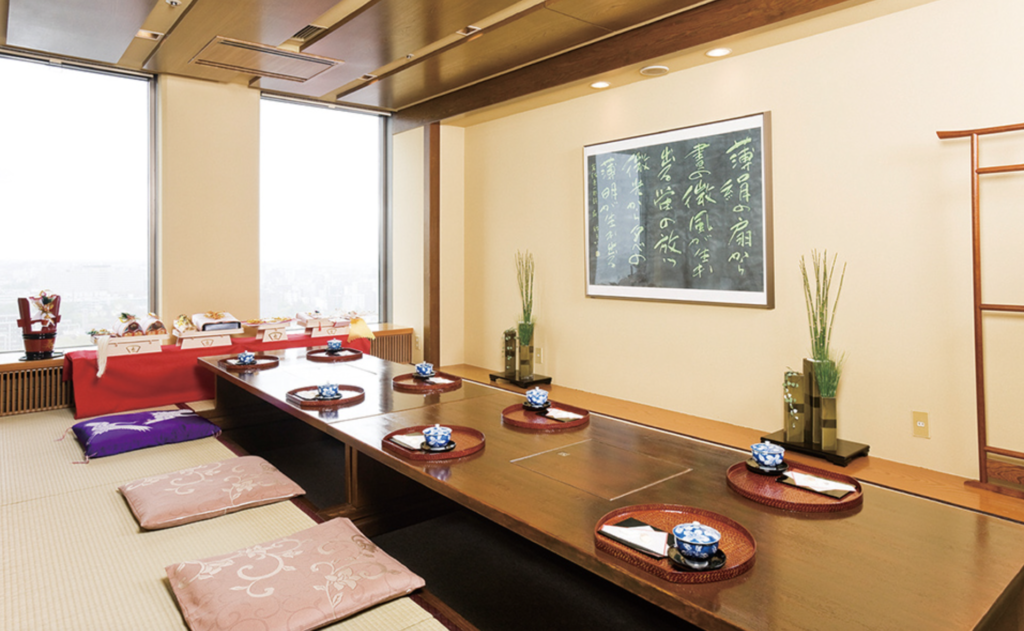 個室は、脚に優しい掘りごたつの和室と落ち着いた雰囲気の洋室から選べます。どの部屋も広い窓が設けられており、22階からの札幌市街の景色を一望できる贅沢な空間です。特に夜景は格別で、都会の輝きを背景に厳かな顔合わせの時間を演出してくれます。