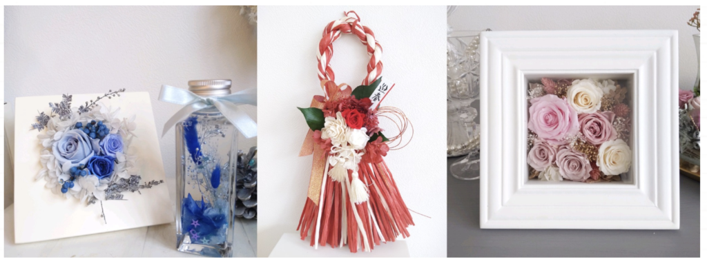 オリジナルブランド「Shihoriハーバリウム」をはじめ、プリザーブドフラワー、ドライフラワー、アーティフィシャルフラワーなど、暮らしを彩る様々なアイテムを取り揃えています。完成した作品は心を込めてラッピングいたしますので、大切な方への贈り物としてもおすすめです。