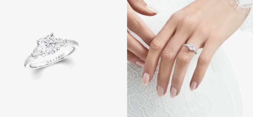 グラフの婚約指輪のデザインはシンプルなものが多い印象です。凝ったデザインで勝負するのではなく、ダイヤモンドの美しさを最も引き立てるデザインを追求。