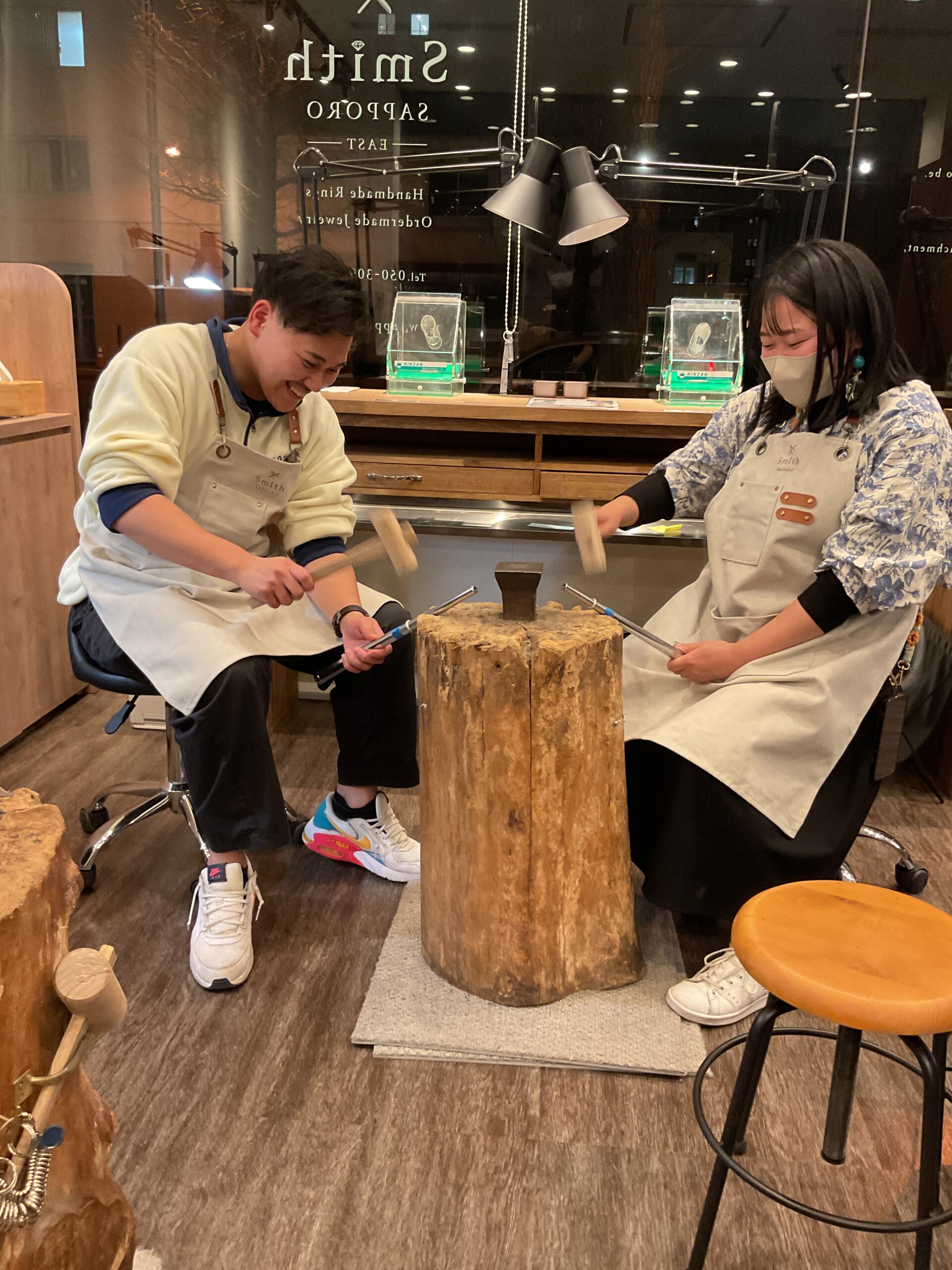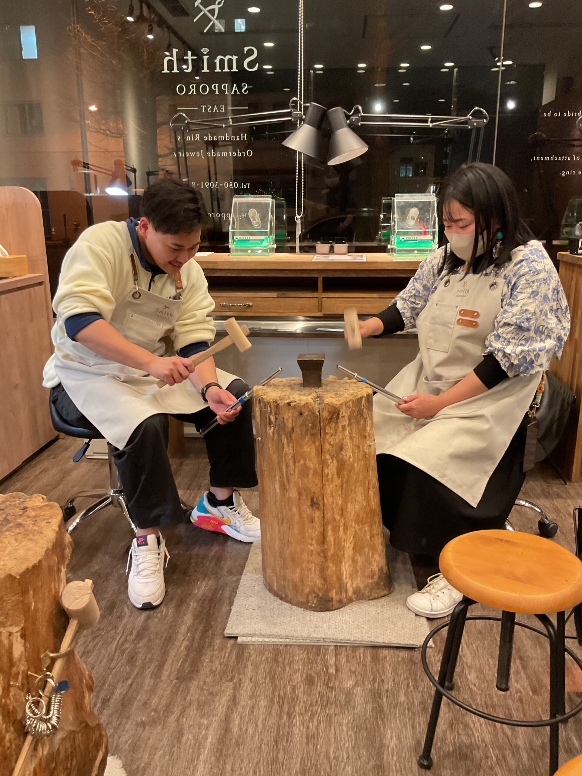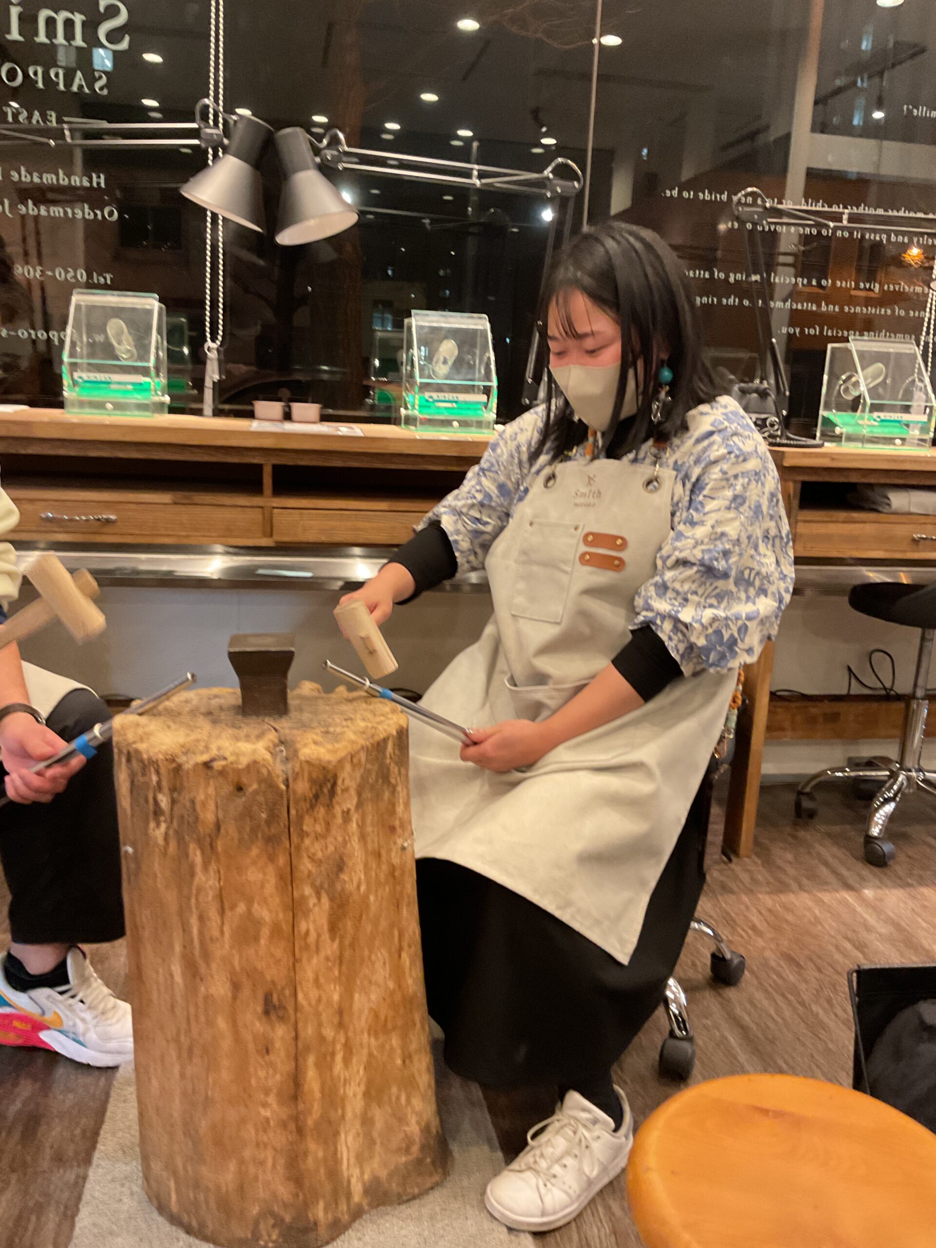 基本の形は2mmと4mmの甲丸リングにテクスチャーは鏡面をお選びいただき、ピカピカになるまで磨いていただきました。