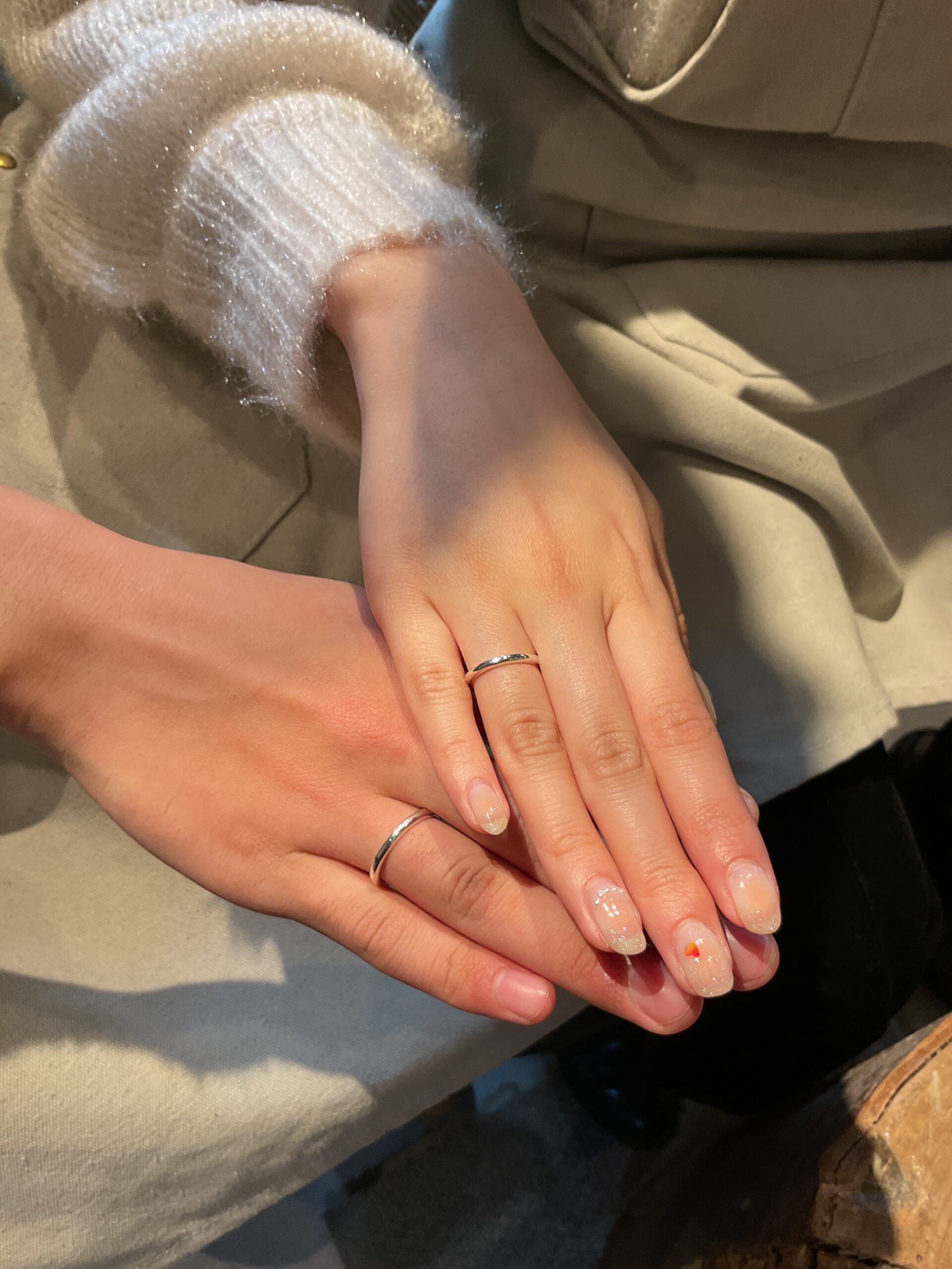 基本の形は2mmの甲丸リングにテクスチャーは鏡面をお選びいただき、ピカピカになるまで磨いていただきました。