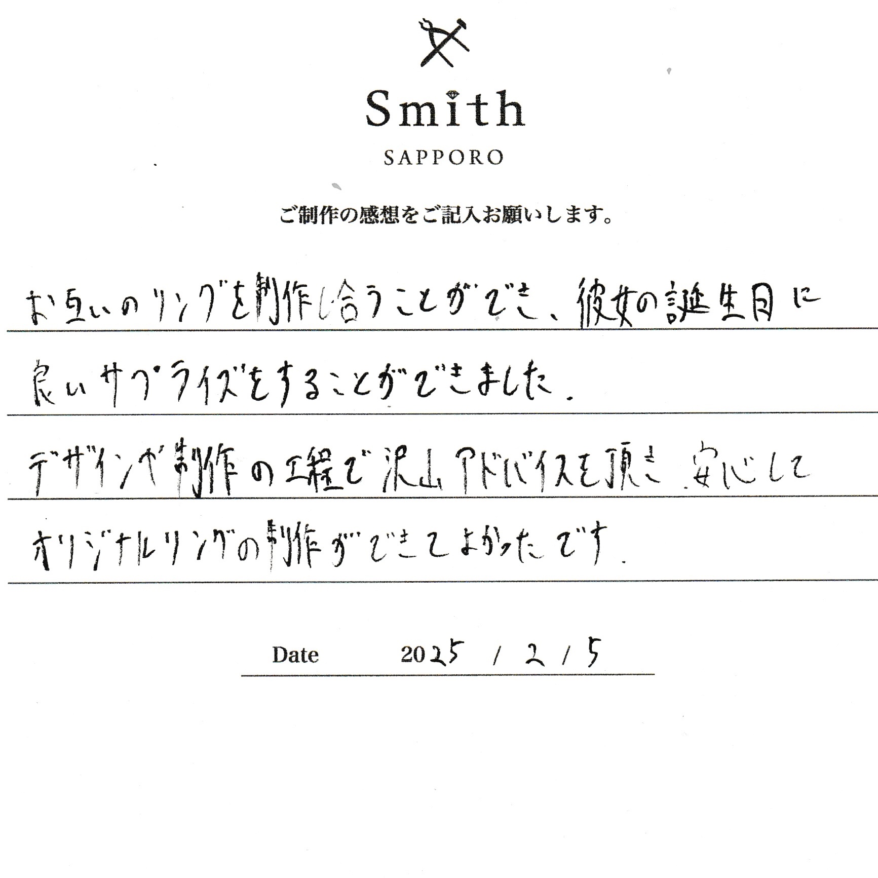 お互いのリングを制作し合うことができ、彼女の誕生日に良いサプライズをすることができました。