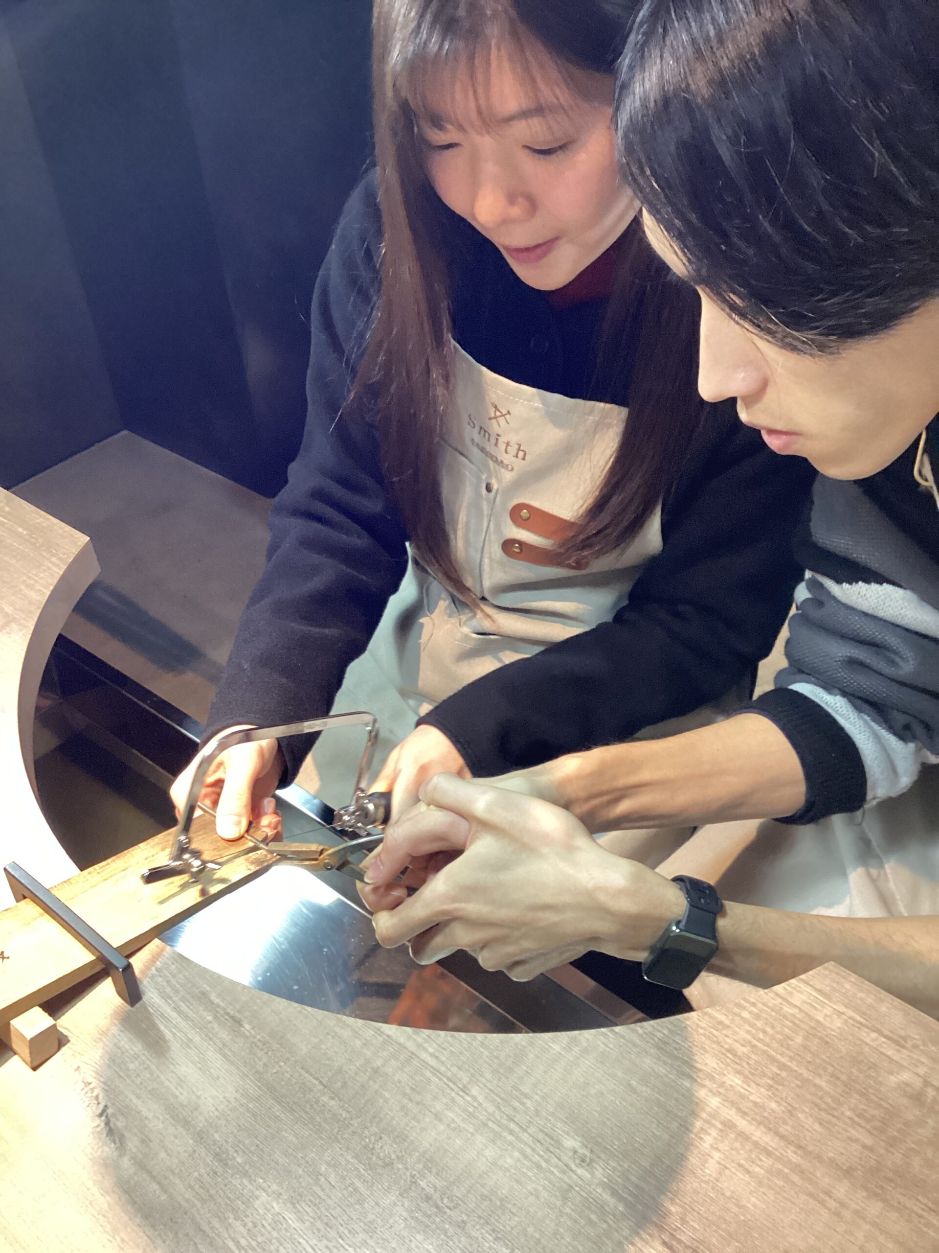 穏やかなご主人様と、おっとりと可愛らしいご奥様が協力し合いながら指輪作りを楽しんでいらっしゃるお姿に、こちらもとても和やかな気持ちになりました。
