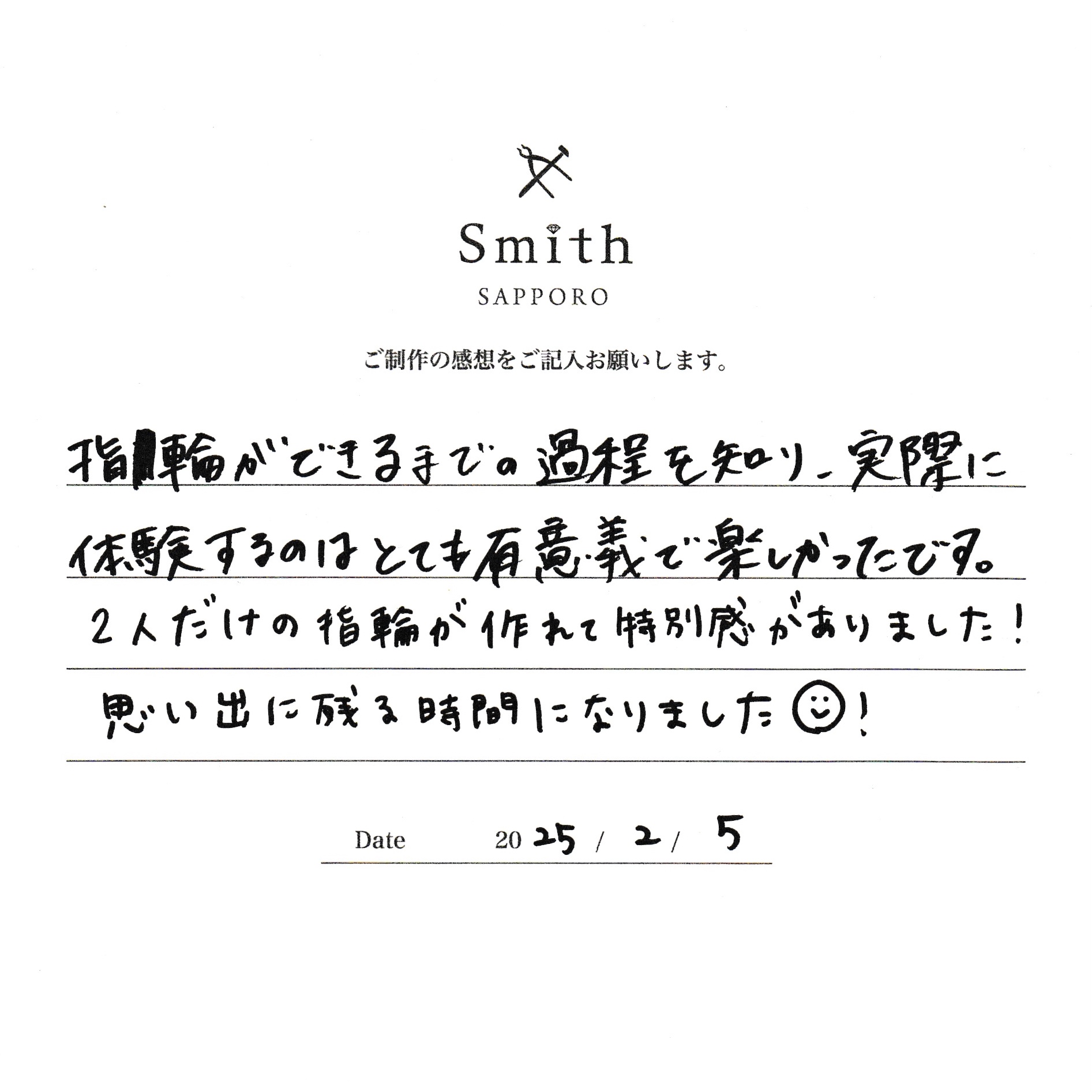 このたびは、手作りの結婚指輪の制作に工房Smithをお選びいただき、誠にありがとうございました。