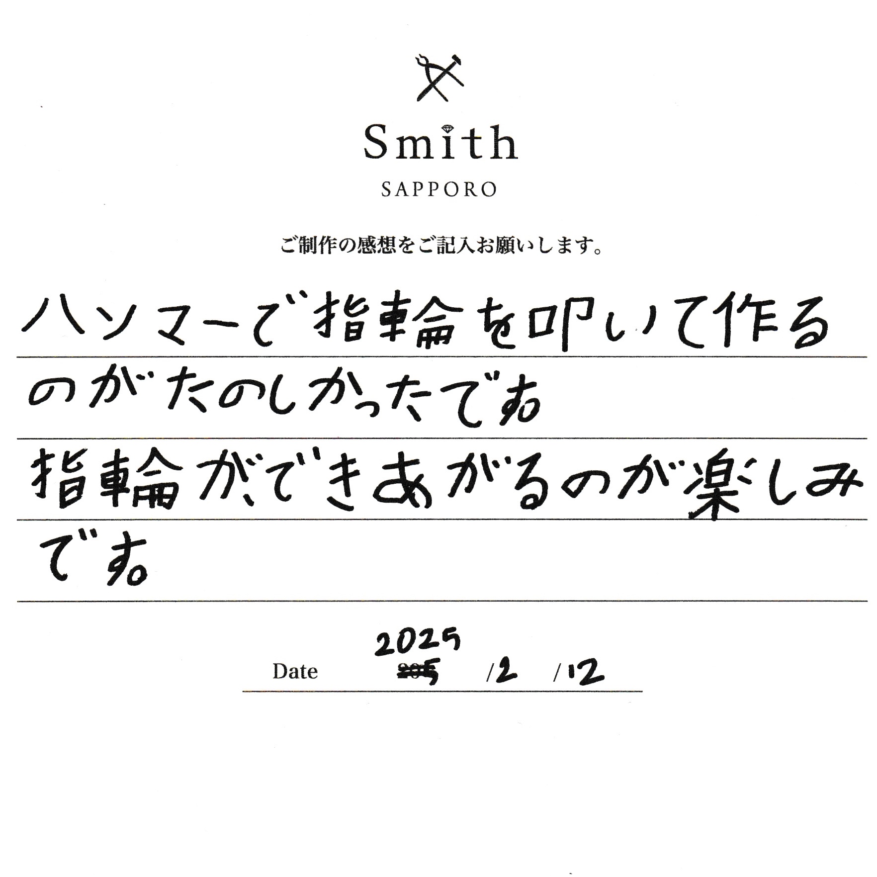 T様【ハンマーで指輪を叩いて作るのが楽しかった】
