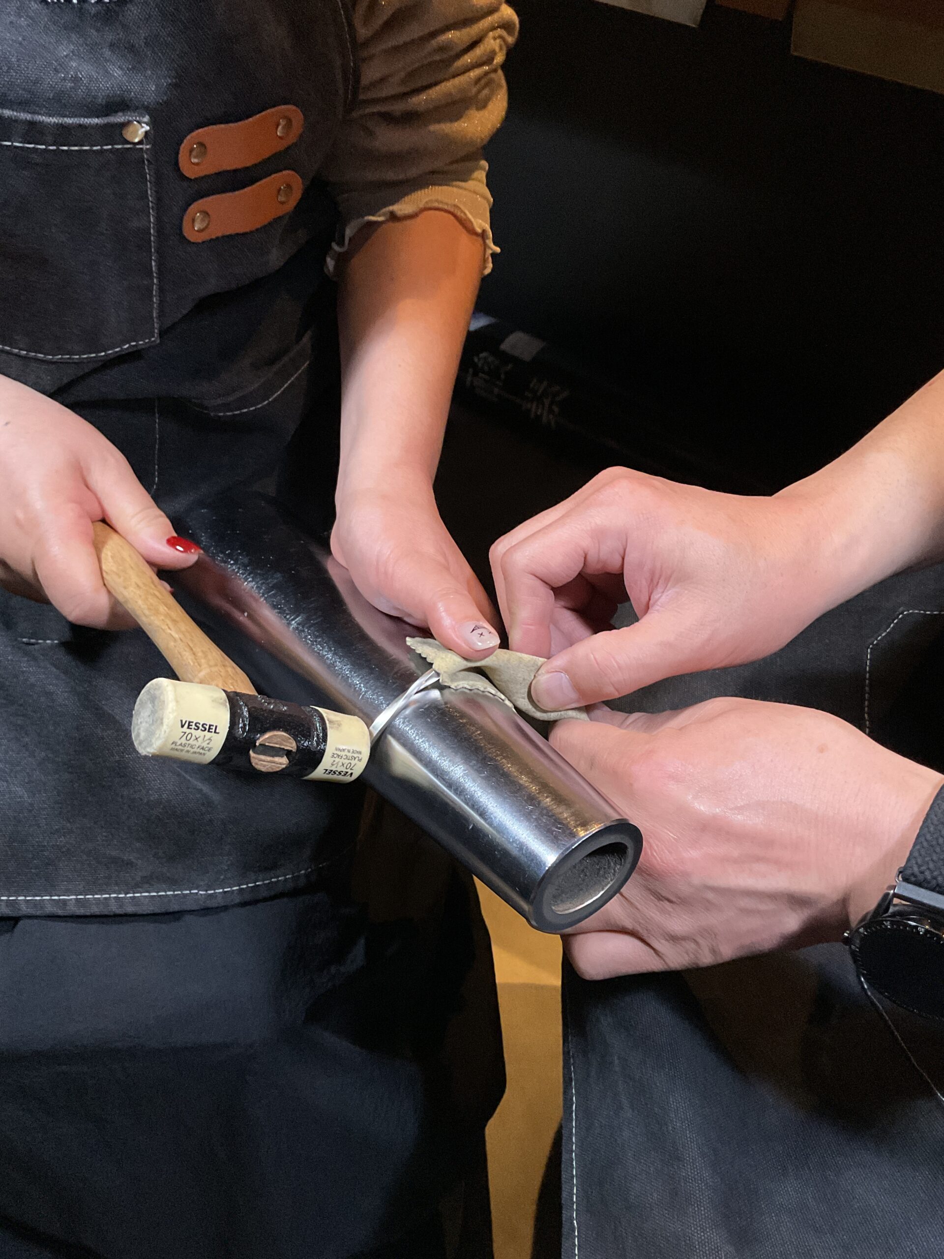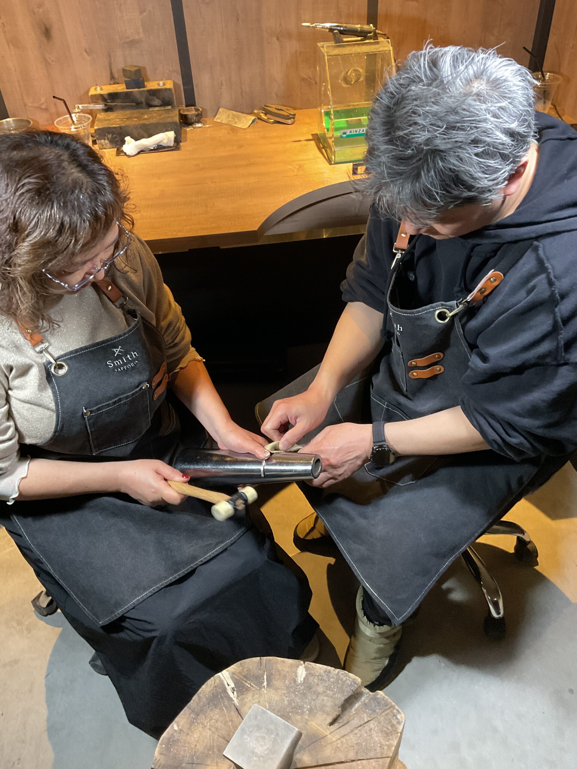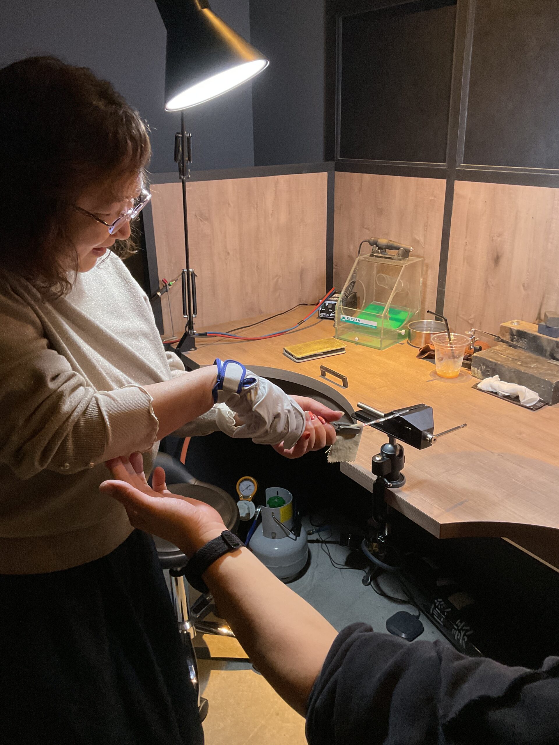お二人が支え合いながら作業されるご様子がとても印象的で、深い絆を感じる素敵なひとときでした。 心を込めて作られたバングルとリングは、お二人の大切な思い出のひとつとなることと思います。