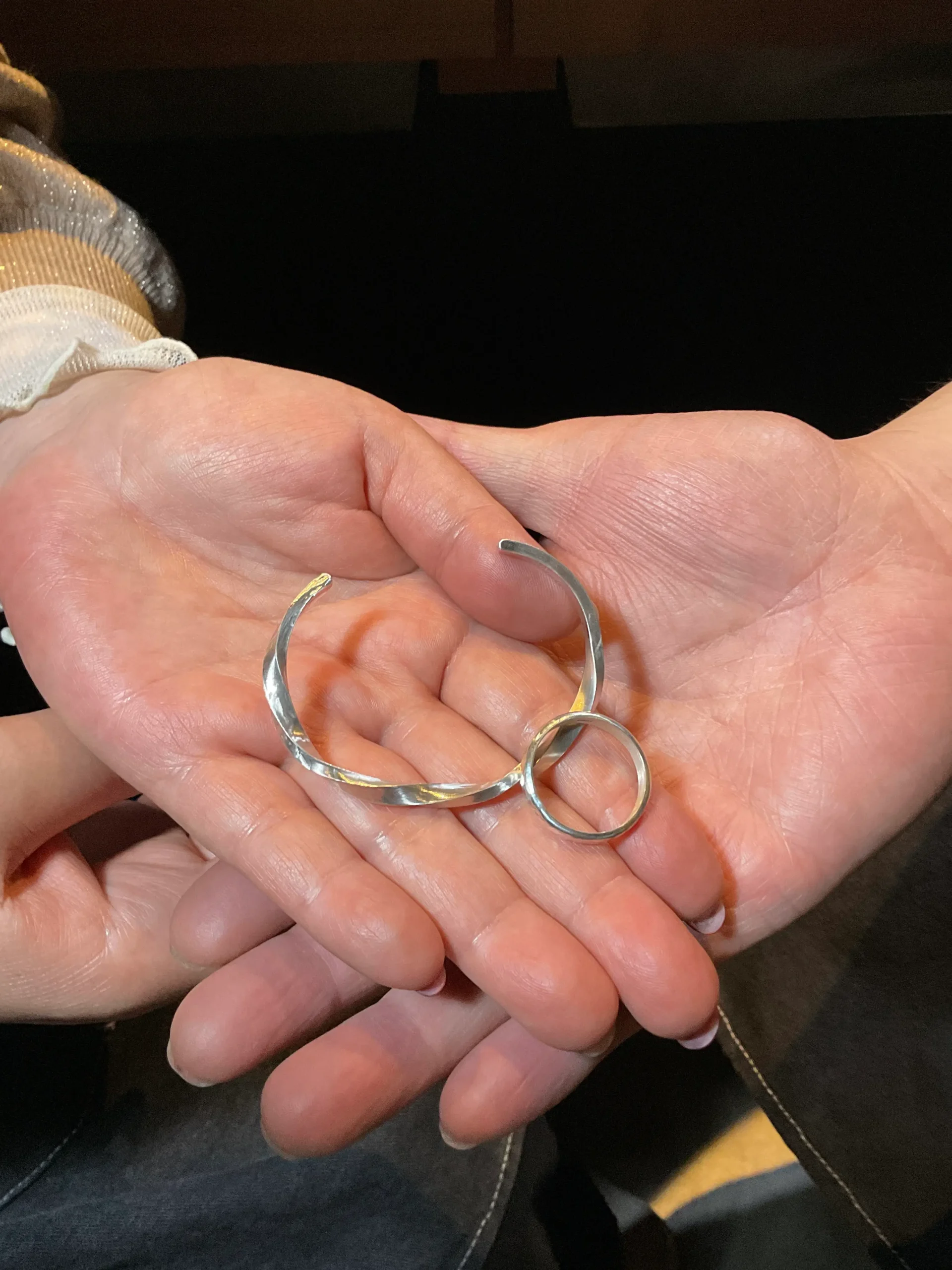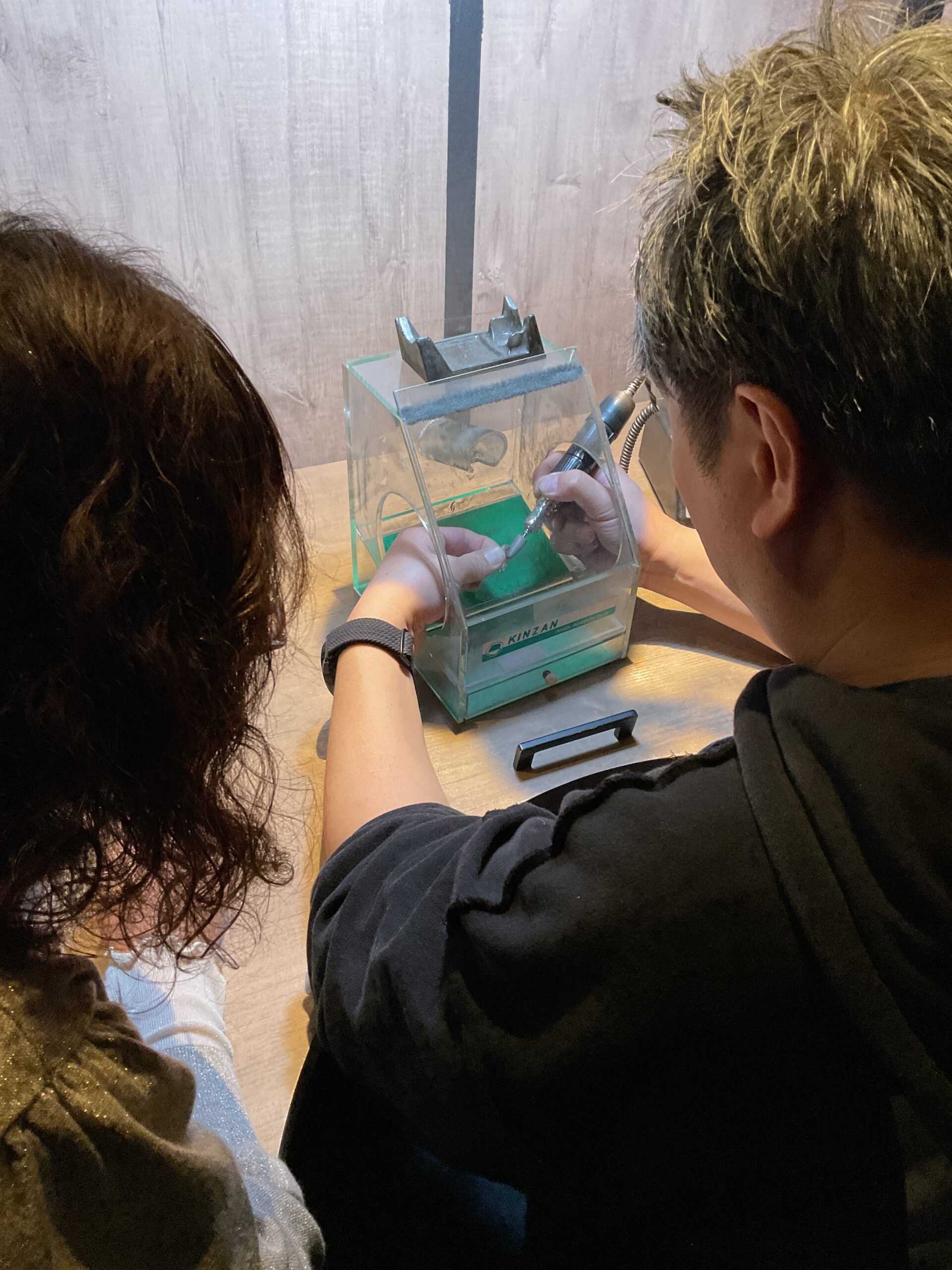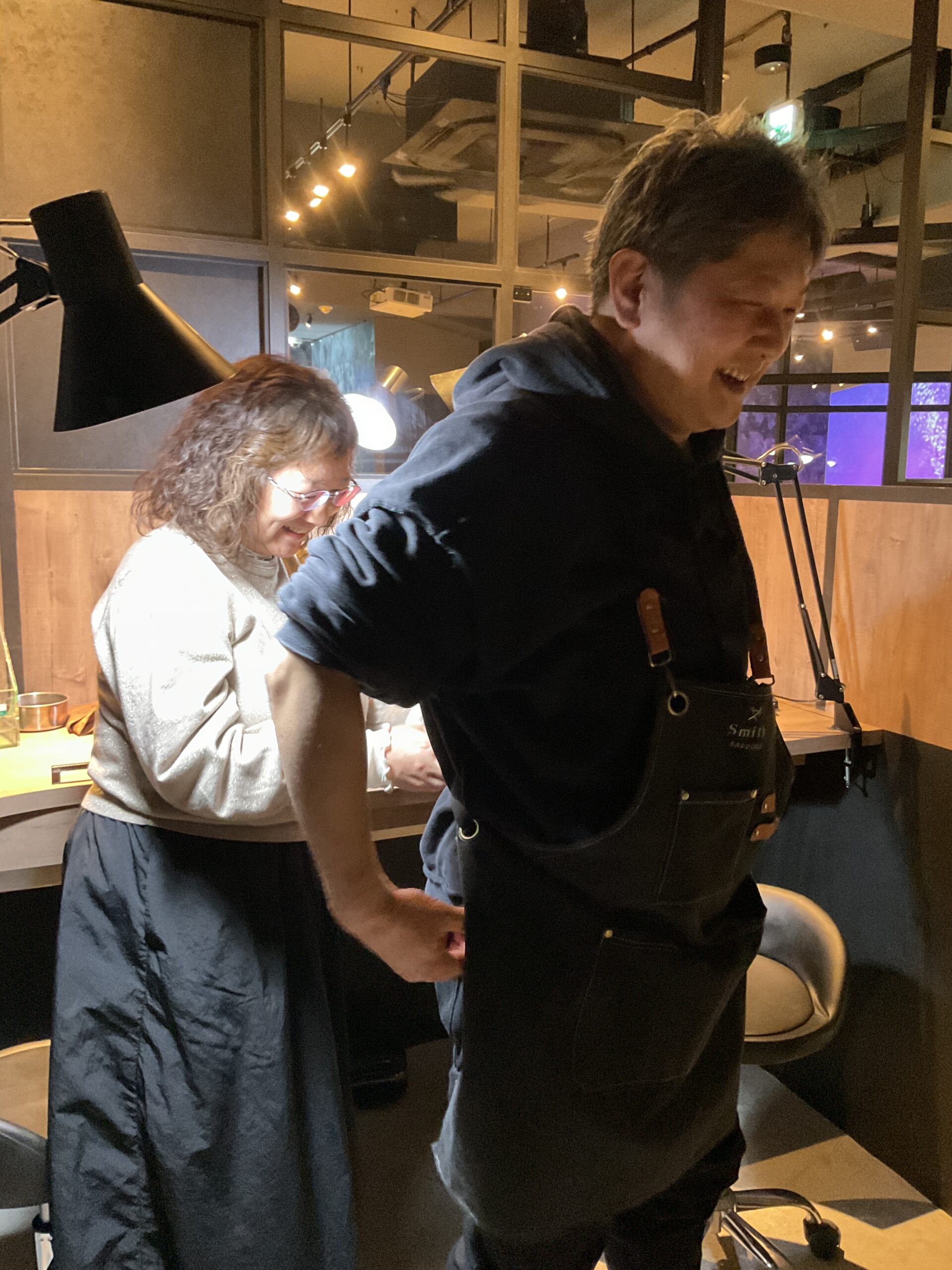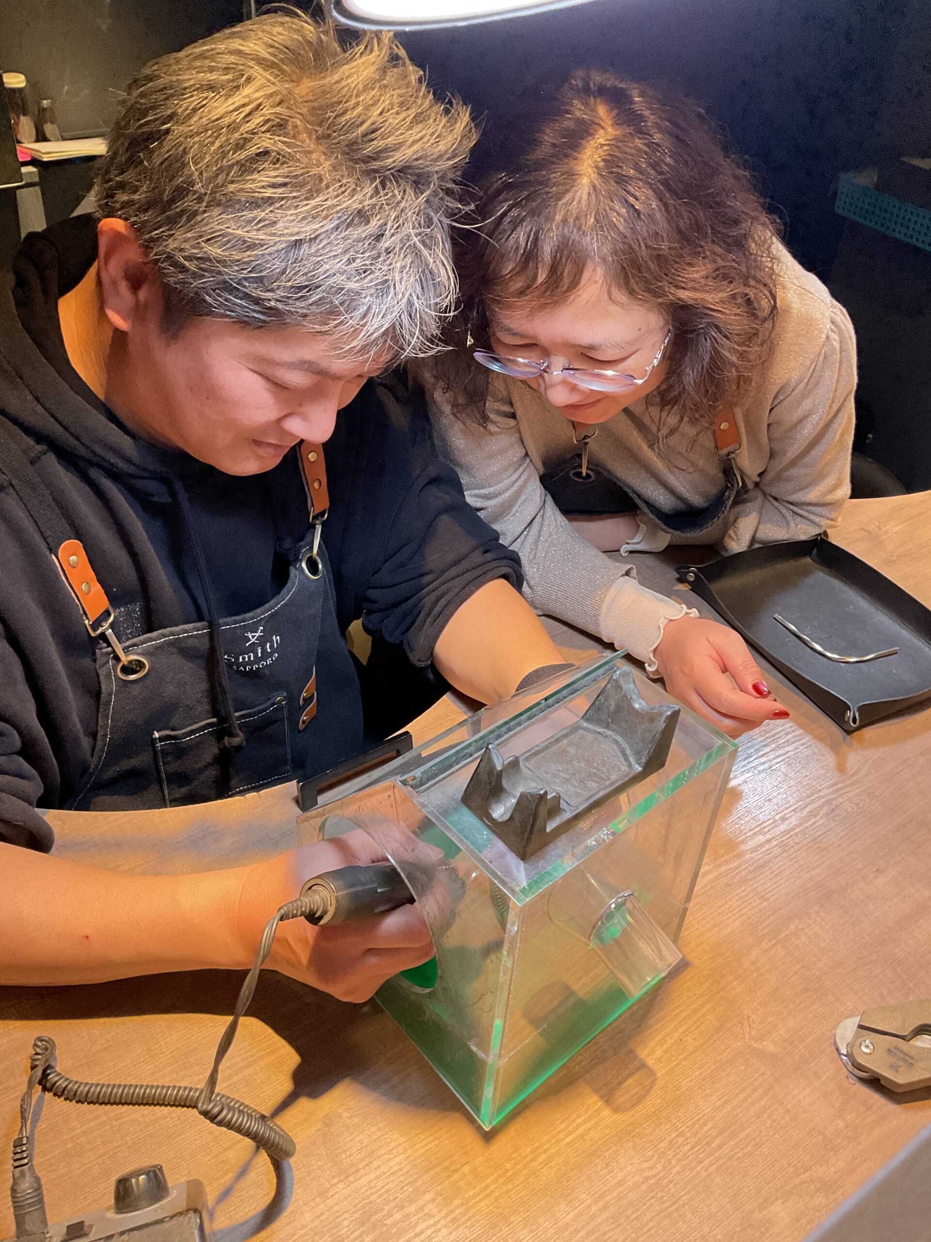 お二人が支え合いながら作業されるご様子がとても印象的で、深い絆を感じる素敵なひとときでした。 心を込めて作られたバングルとリングは、お二人の大切な思い出のひとつとなることと思います。
