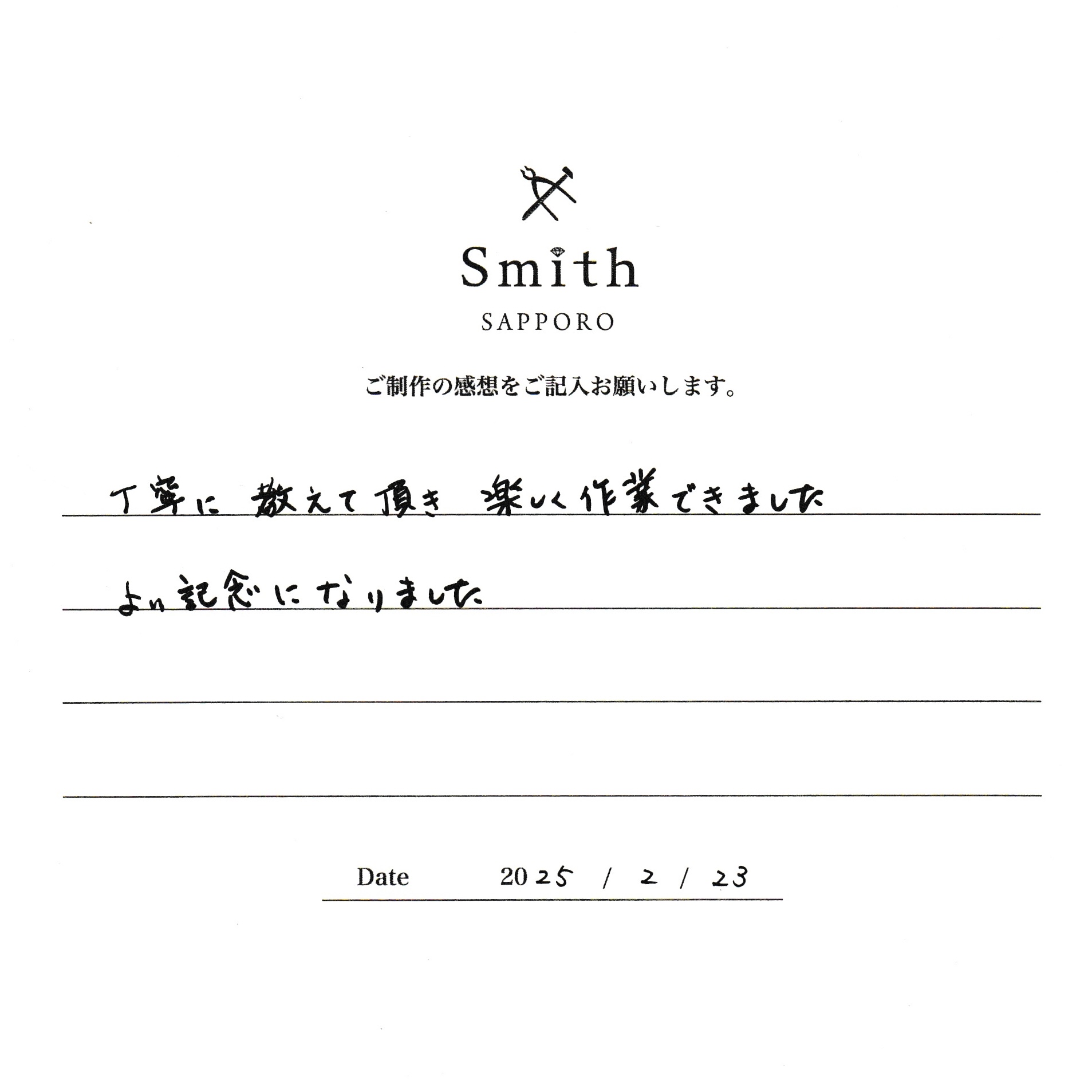 この度は、お二人の大切な銀婚式の記念に工房Smithをお選びいただきまして、誠にありがとうございます。