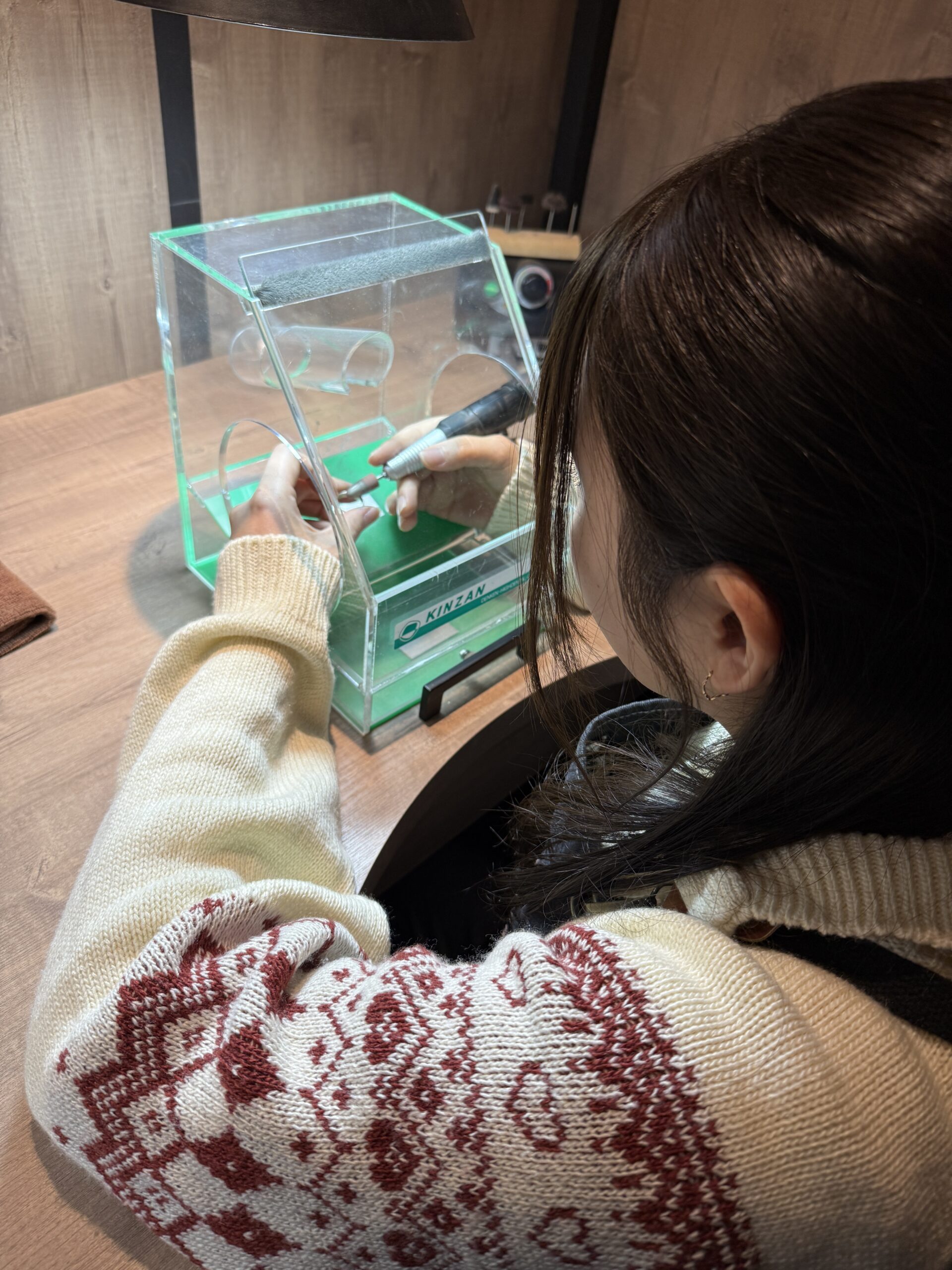 2人の初旅行に北海道に来てくださったとお伺いし、今日のペアリング作りも、良い思い出の1つとして残って頂けたら嬉しいです!