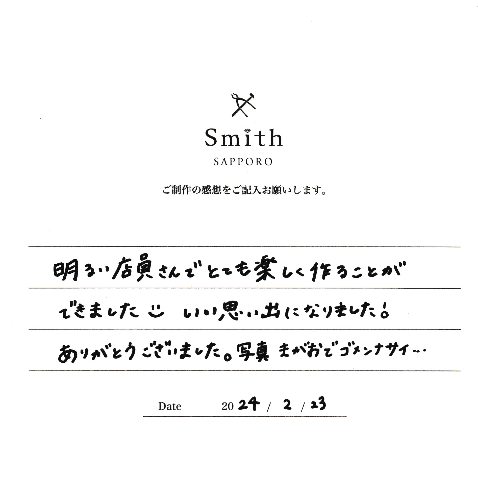 この度は遠方より、手作りペアリングのご制作に工房スミス札幌店までご来店頂き誠にありがとうございます!