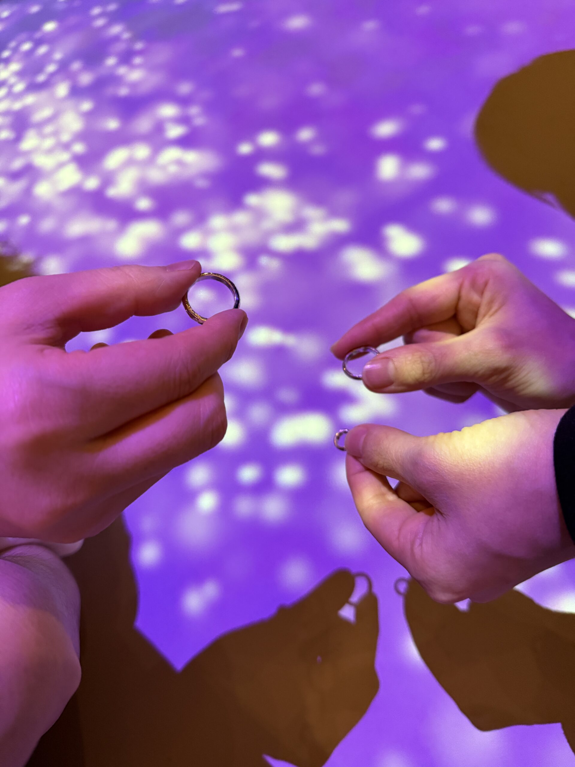 ご夫婦のペアリングと共に、3ヶ月の娘さんの指輪を作りにいらして下さいました。
