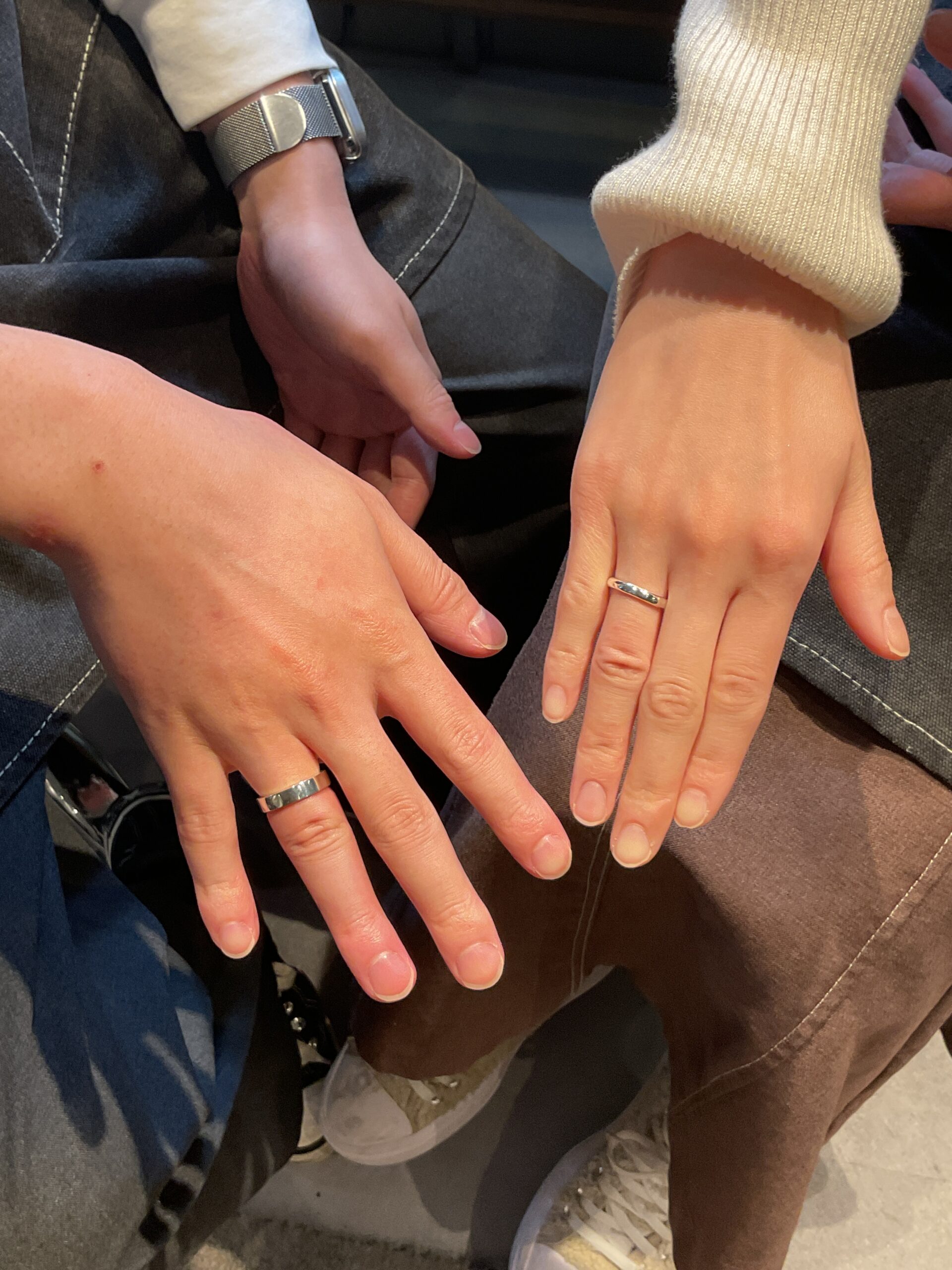 基本の形は3mmと4mmの甲丸と平打ちリングにテクスチャーは鏡面をお選びいただきました。