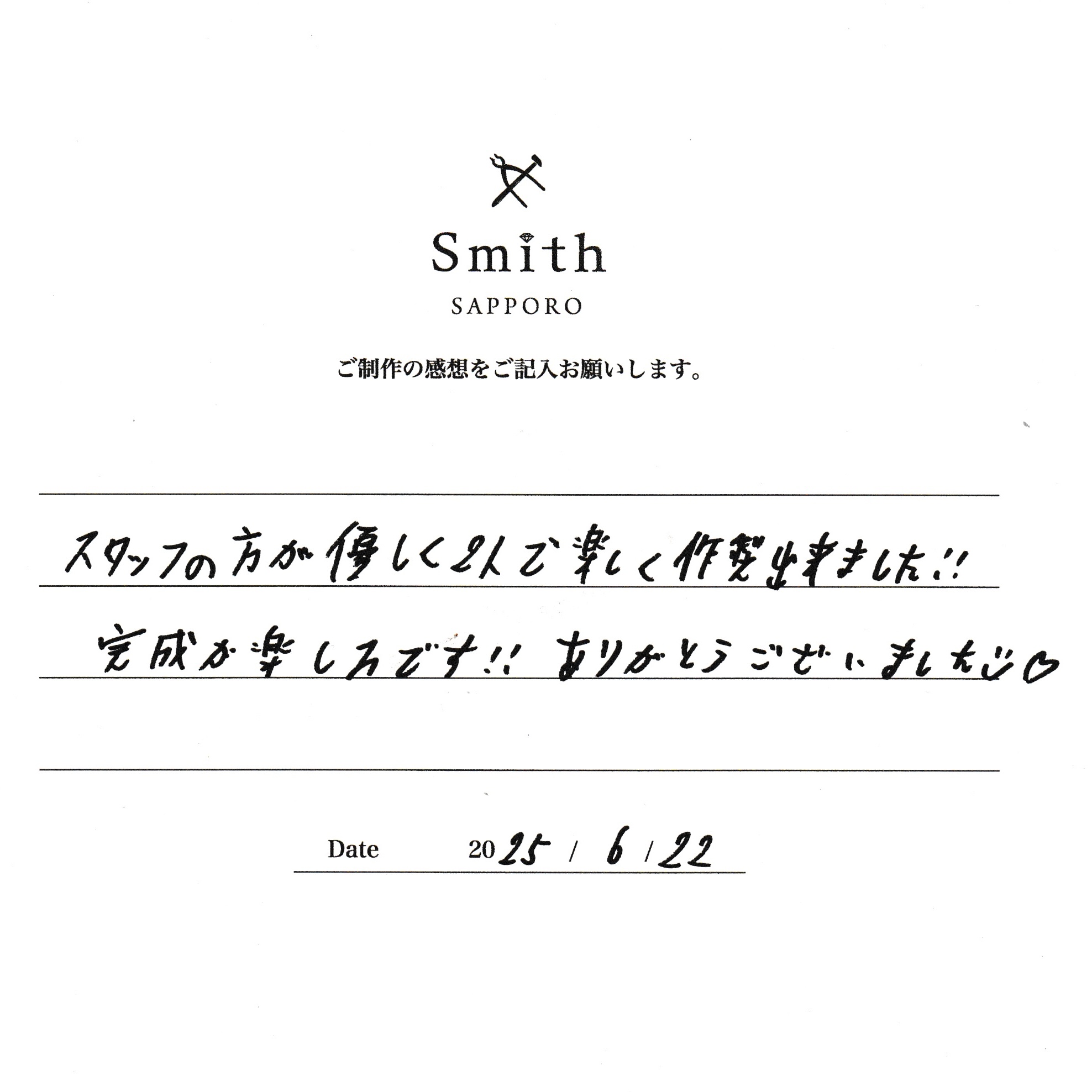 O様・Y様【スタッフの方が優しく2人で楽しく制作できました】