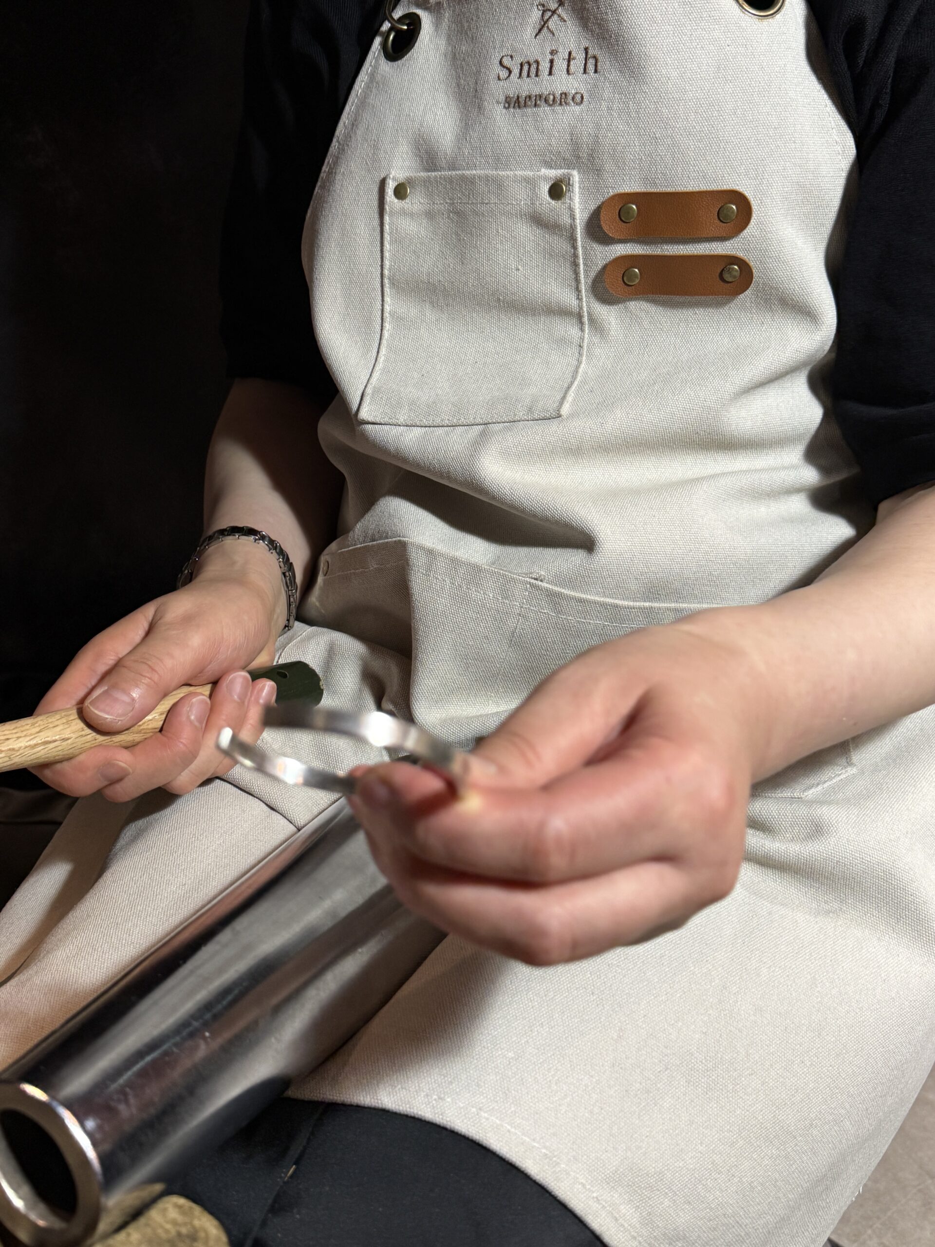 作業の手際もよく、力加減や工程の理解もとても早く、あっという間に素敵なバングルが完成しましたね。