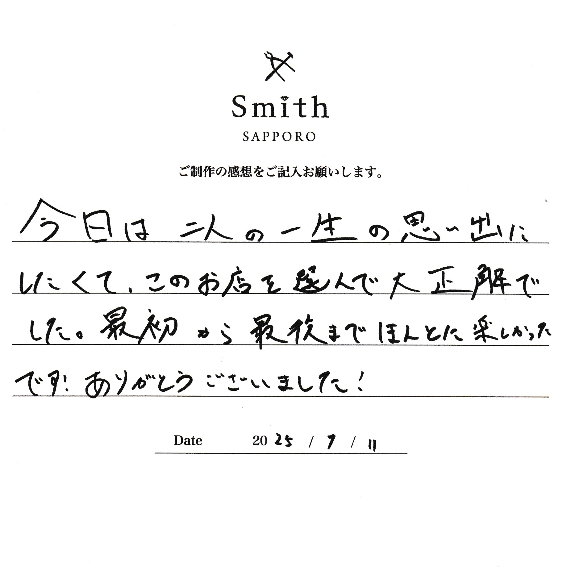 今日は二人の一生の思い出にしたくて、このいお店を選んで大正解でした!