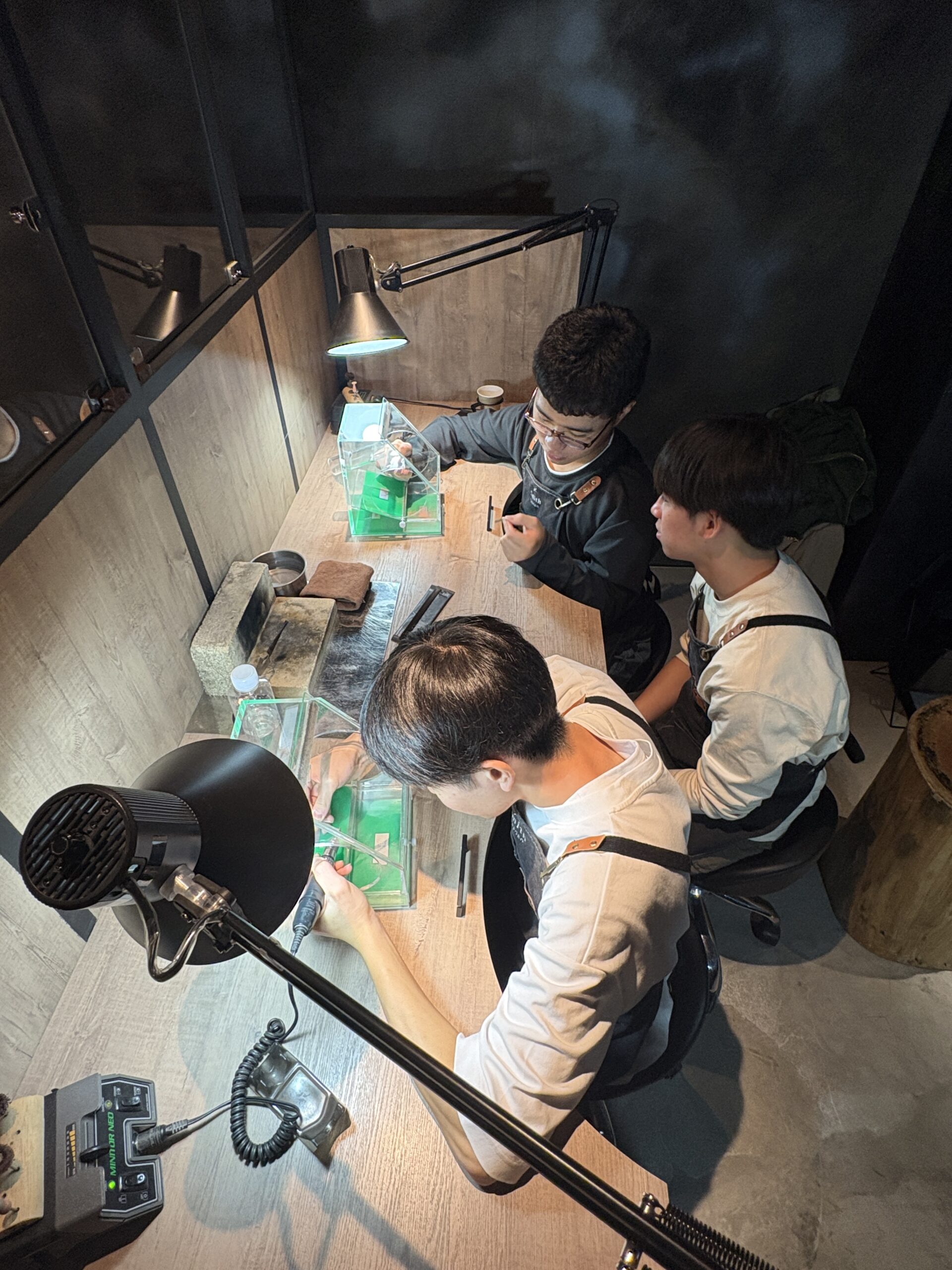 仲良し男子3人組でお揃いのネックレスを選んでくれたのは、少し珍しく嬉しい驚きでした。お揃いのデザインを選び、仲良くワイワイと楽しそうに制作されている様子がとても印象的でしたし、羨ましくもありました。